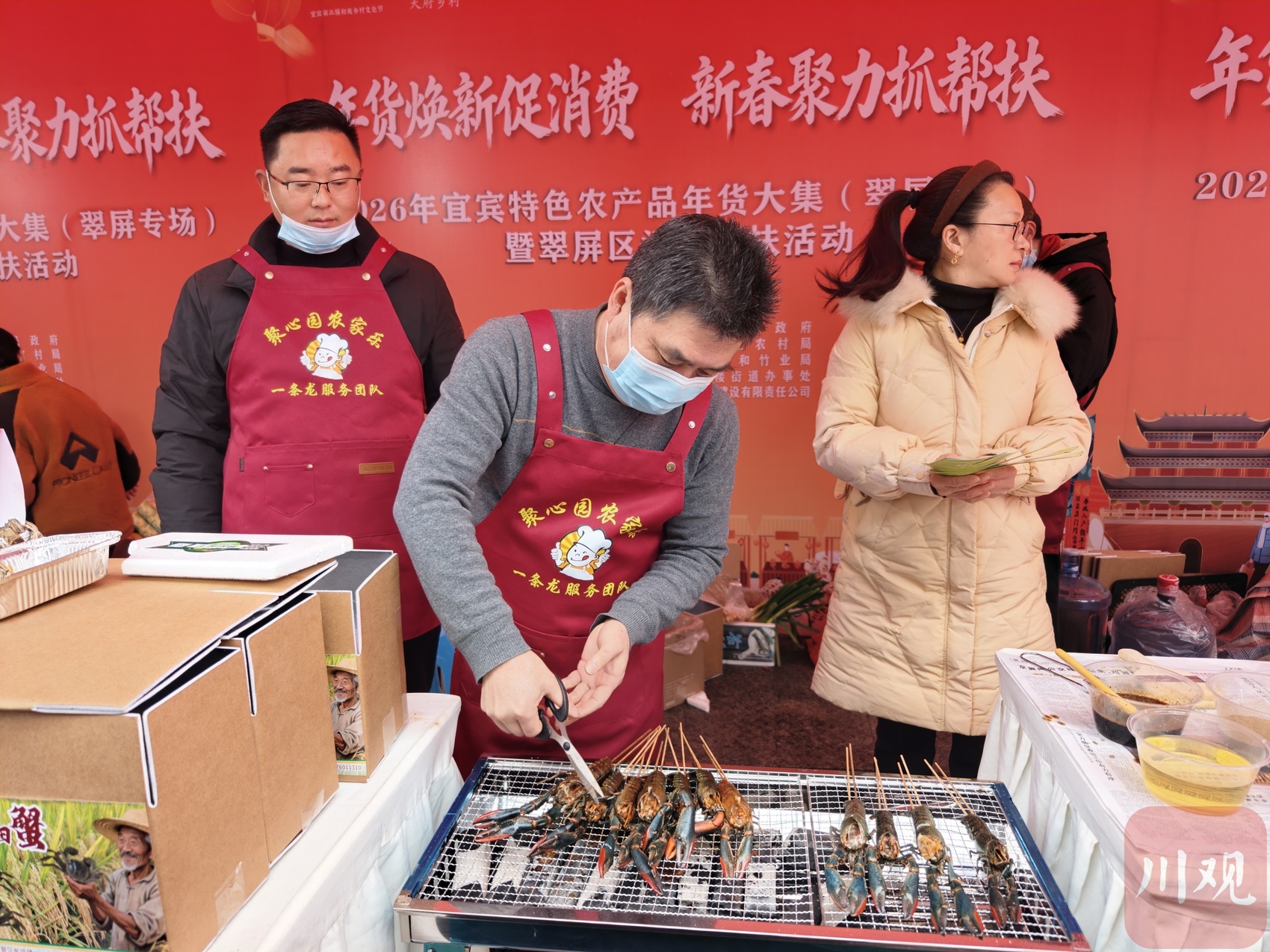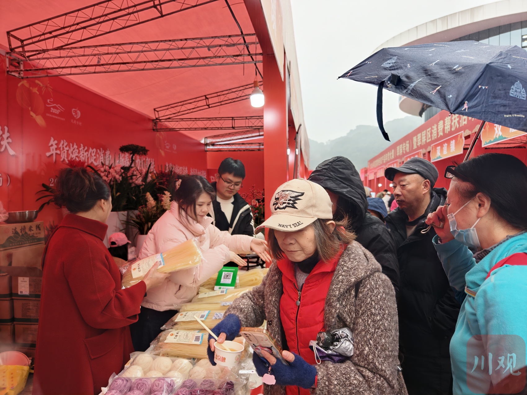 “帮扶”也是本次年货大集的一个特色。展销会重点组织以脱贫户、监测户为主体的商户参与,并设置专门的天府乡村公益品牌展区。