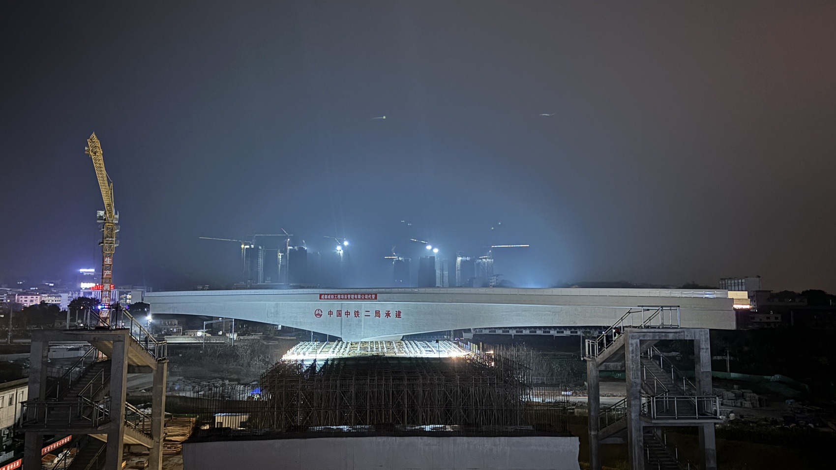 “这是在铁路运输的‘心脏’地带动手术。”中铁二局自贡冷链项目负责人万强形容。桥梁转体区下方,是内昆铁路的关键货场,轨道密集,行车繁忙,日均通过列车数量巨大。“我们必须保证,整个施工过程不能有一丝一毫的干扰,安全压力是空前的。”
