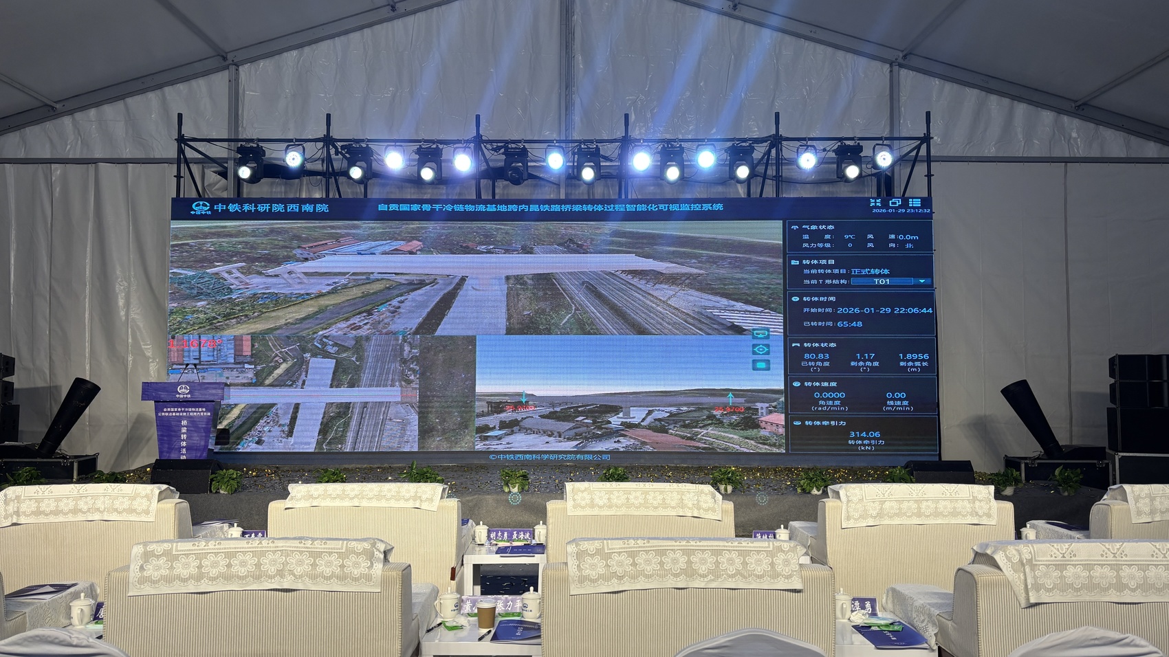 自贡国家骨干冷链物流基地公铁联运基础设施工程关键的节点——跨内昆铁路转体桥,以一场“毫米级”转身宣告成功。