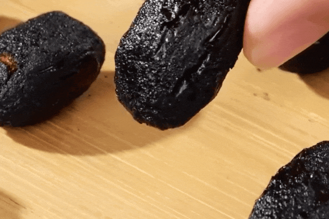 三蒸三晒:是灵魂的升华,这时的它色如墨玉,入口温暖直抵脾胃,糯得能拉丝~
