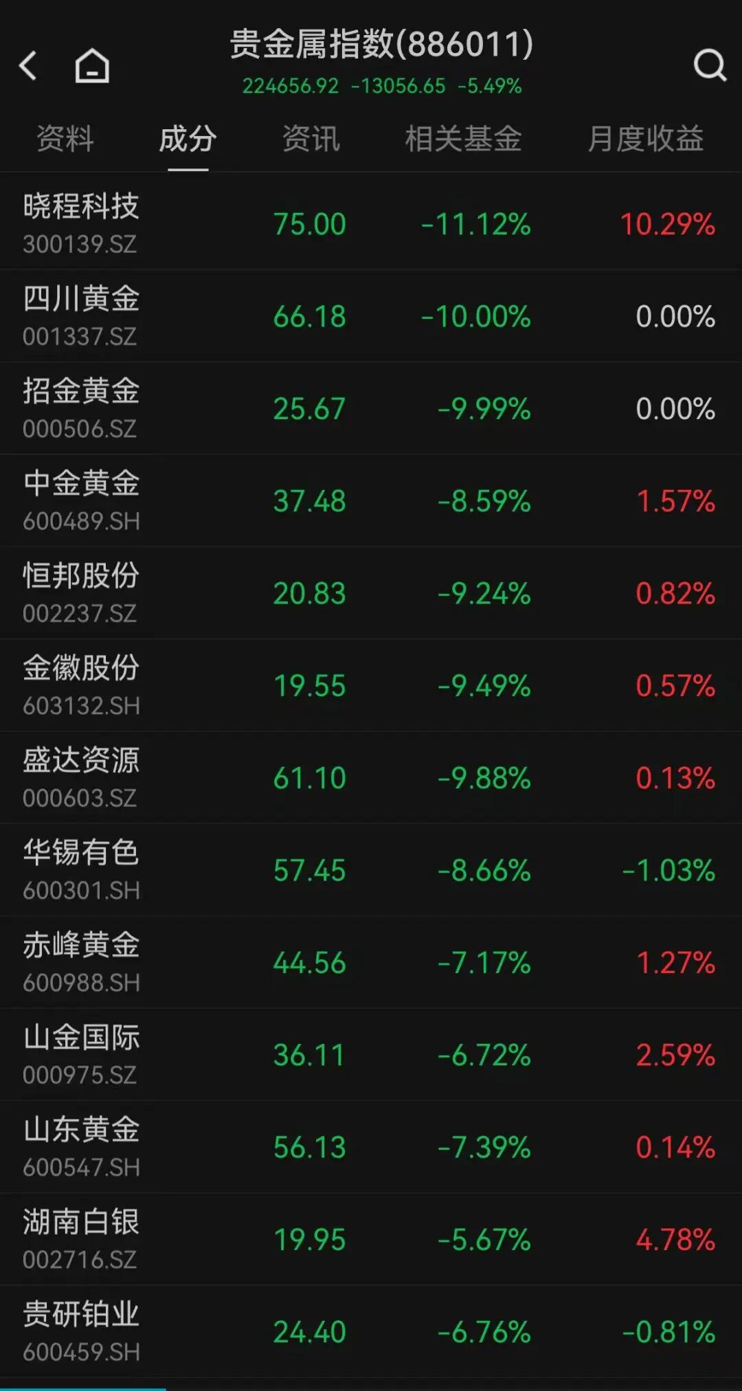 1月30日,上证指数低开0.63%,创业板指跌0.09%。黄金、基本金属板块大跌,个股现跌停潮,四川黄金、中金黄金、招金黄金、白银有色等多股跌停。
