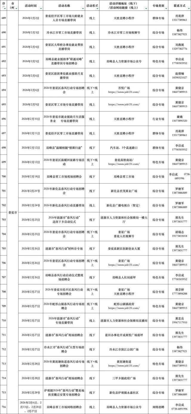 扫码查看“2026年2月全省公共招聘活动预告信息表”(具体活动安排按实际举办地为准)