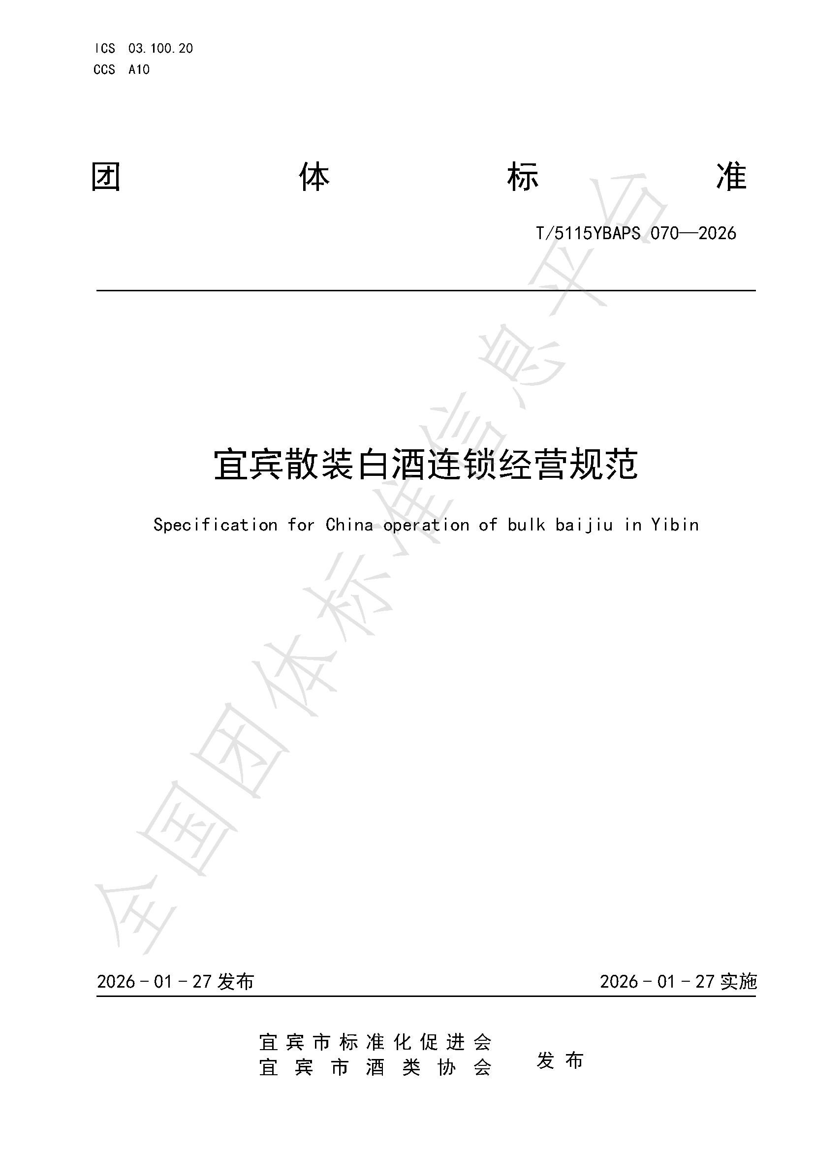 日前,由宜宾市酒类协会与宜宾市标准化促进会联合发布的《宜宾散装白酒连锁经营规范》团体标准正式发布。