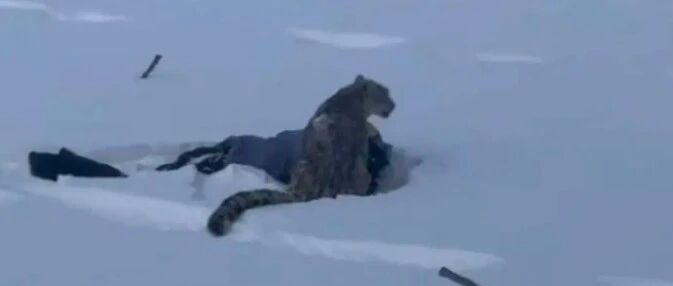 近日,新疆富蕴县可可托海镇塔拉特村区域发生滑雪游客被雪豹咬伤事件后,1月28日,该区域又有雪豹出现,并闯入一牧民羊圈中咬死35只羊,咬伤5只。