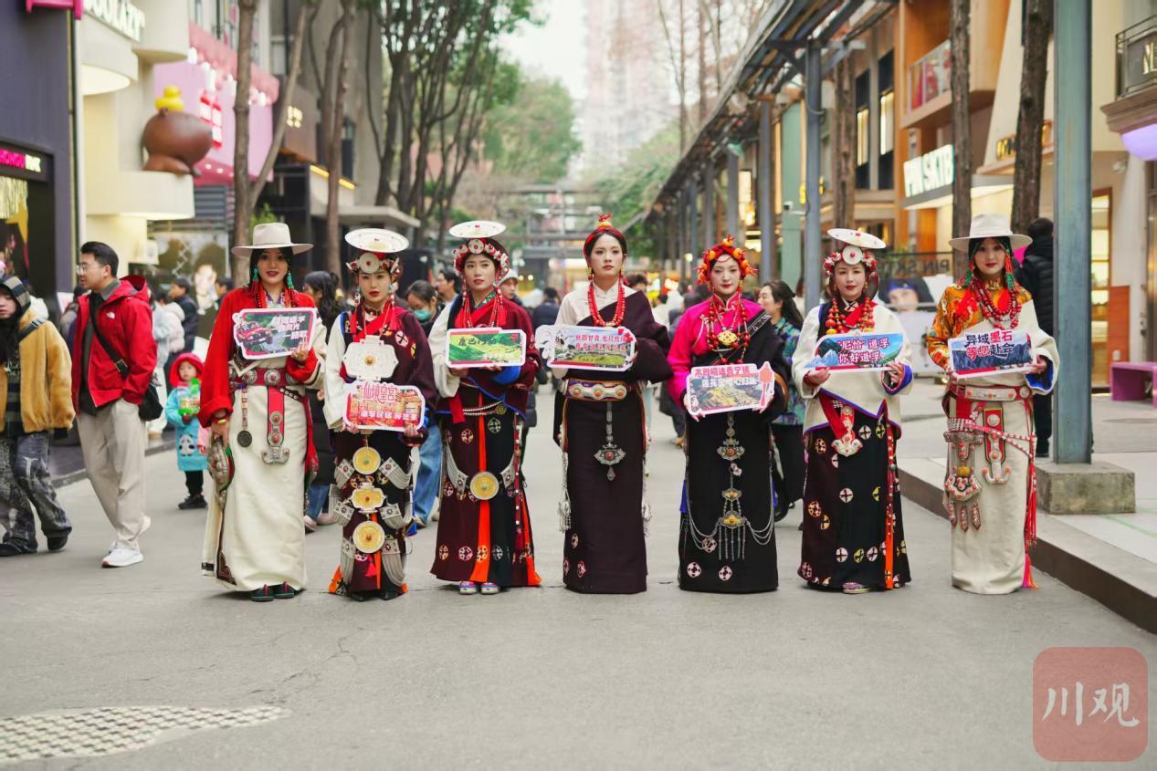 近日,甘孜州道孚县的非遗传承人与青年代表身着盛装,亮相成都罗马假日广场、东郊记忆、双子塔等城市地标。他们以欢腾的锅庄舞、华美的民族服饰展示,向成都市民与八方游客发出“圣洁甘孜 一生有约,道孚欢迎你”的热情邀约。