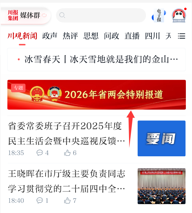 ♦打开川观新闻客户端,进入专题“2026年省两会特别报道”,即可找到“网上工作站”参与留言。也可进入客户端“问政”频道,点击“网上工作站”图片参与留言。
