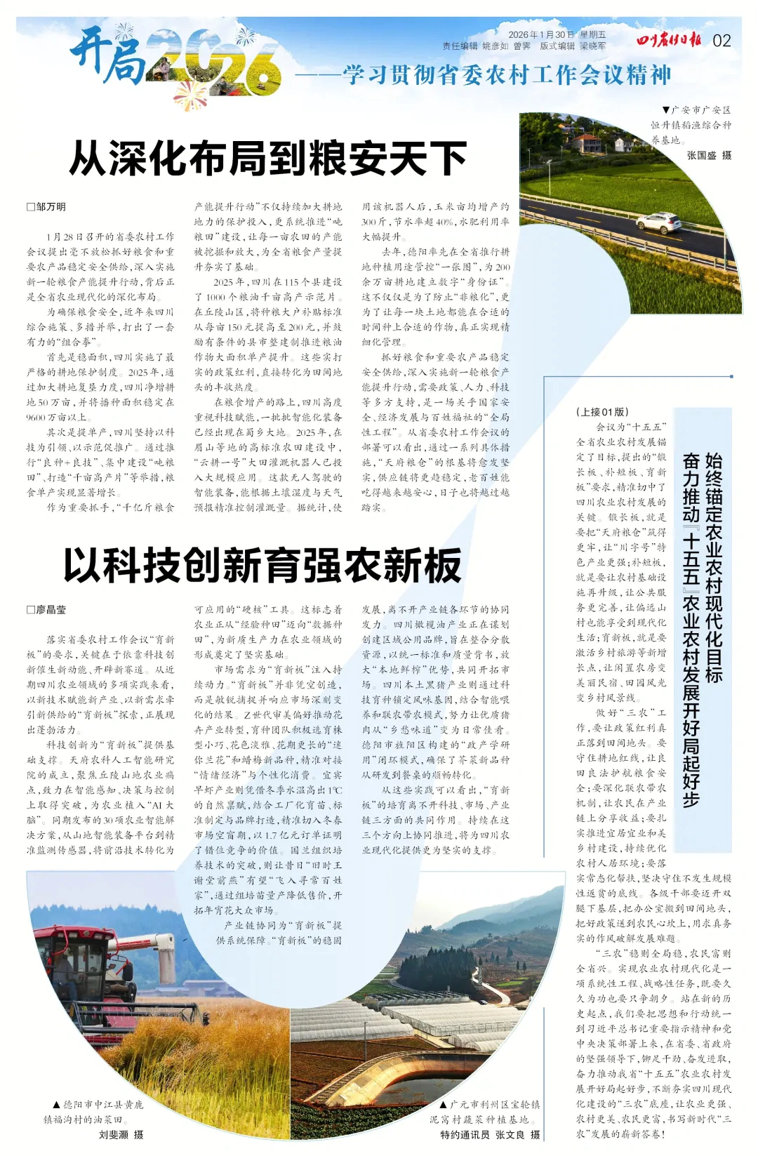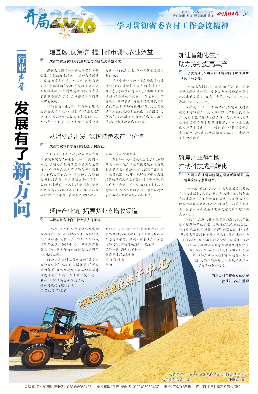“十五五”四川农业将向何处发力?听一线专家擘画新蓝图,看行业领跑者们如何以科技、市场与模式革新,共同推动农业从规模扩张迈向质量效益提升的新阶段。点击4版《行业声音 发展有了新方向》了解详细路径与前瞻思考。