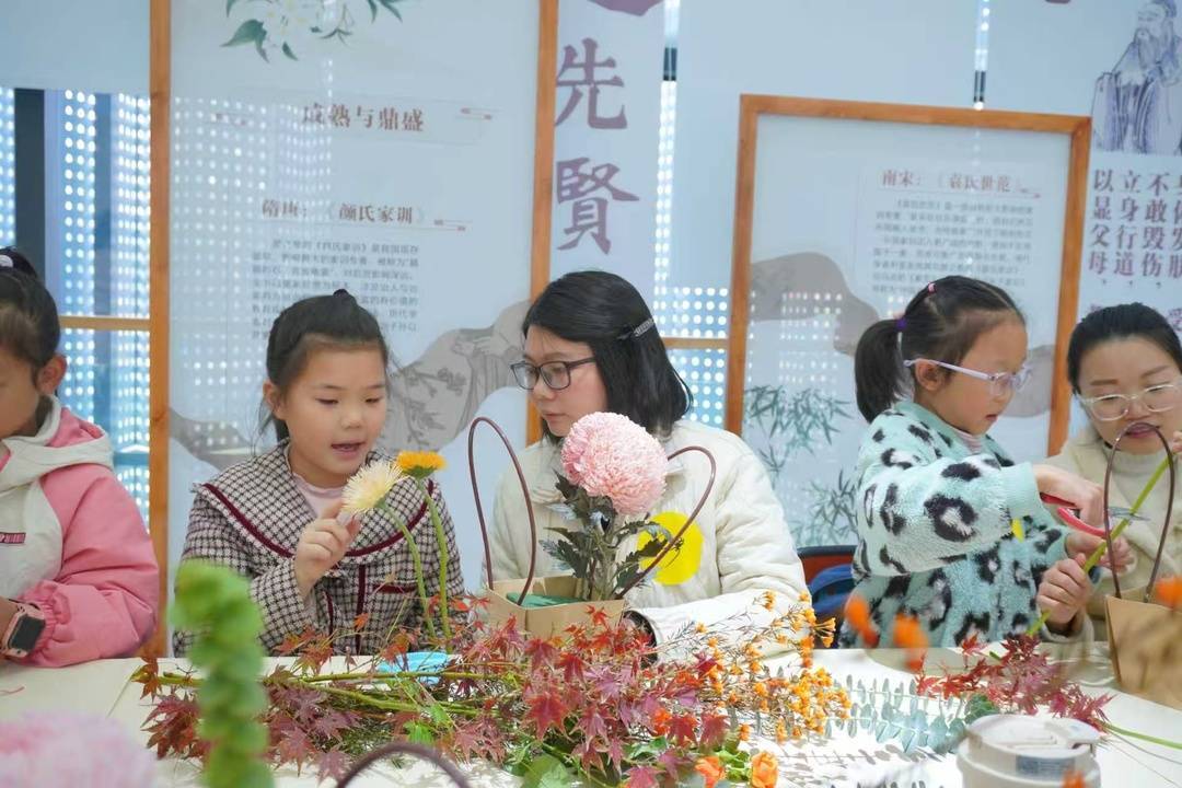 “五香”涵盖“饭香、花香、话香、茶香、书香”,从情感、审美、沟通、心境与精神五个维度,为家庭成长提供全面滋养。“饭香”让厨房变为亲子协作的实践课堂,家庭成员共同烹饪美食,通过亲子配合自然建立情感连接,在轻松氛围中观察并欣赏孩子的闪光点,让爱与教育在烟火气中流淌。“花香”让阳台成为观赏美、感受美的场所,家庭成员通过花艺制作与植物养护,共同提升审美情趣,促进家庭氛围的和谐愉悦。“话香”通过主题沙龙、故事分享等形式,创设平等、专注的对话场景,引导家庭成员实践非暴力沟通与倾听技巧,有效提升亲子情感表达能力,让沟通成为暖心的桥梁。“茶香”借茶道文化“和、静、怡、真”的精神,营造宁静、温馨的家庭氛围。家庭成员在品茗间放缓节奏,敞开心扉,进入深层次的心灵沟通与理解。“书香”通过亲子共读、经典诵读等活动,以文化滋养精神世界,在家庭中树立良好学风,传承智慧,共同构建学习型家庭。