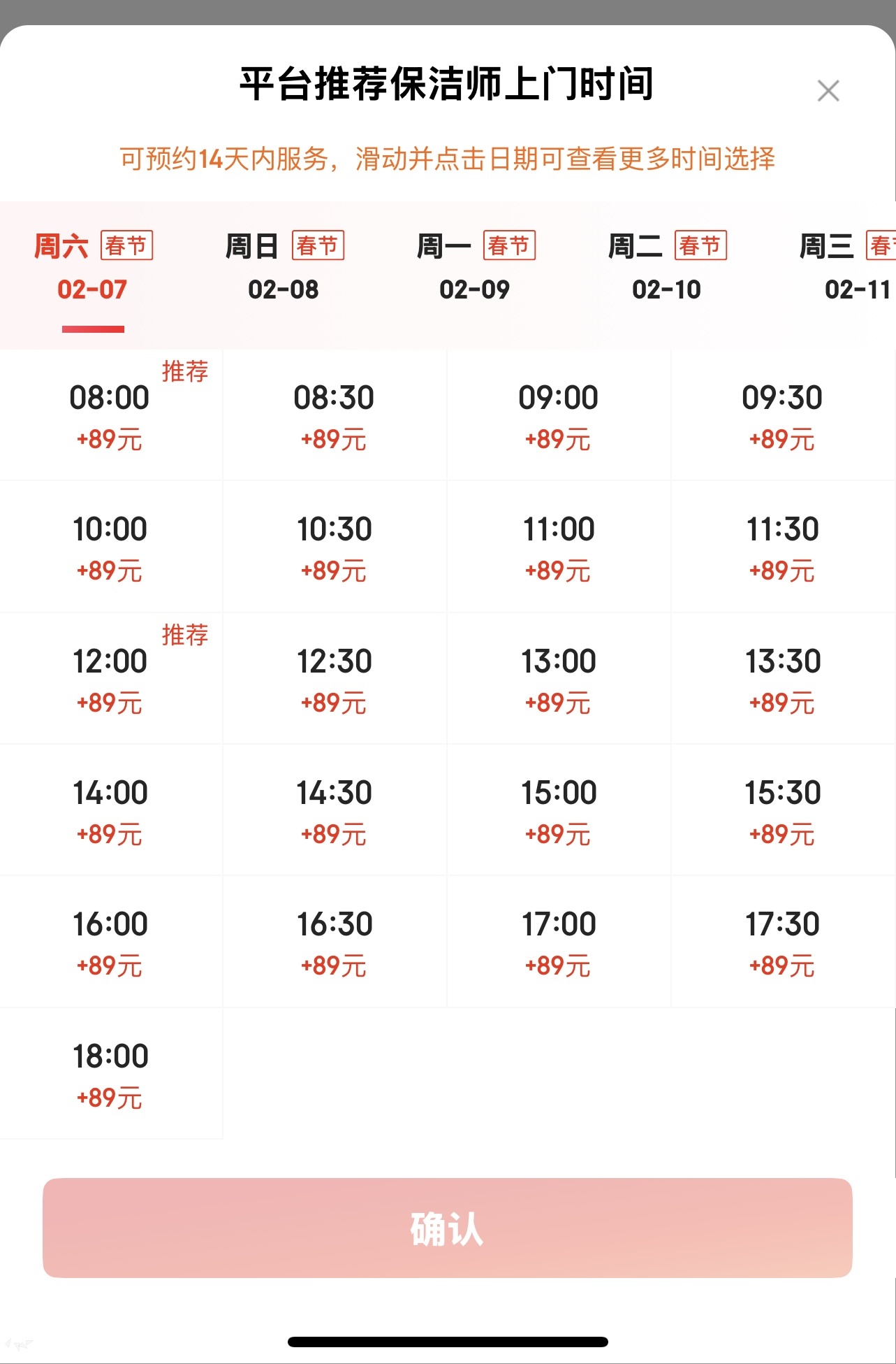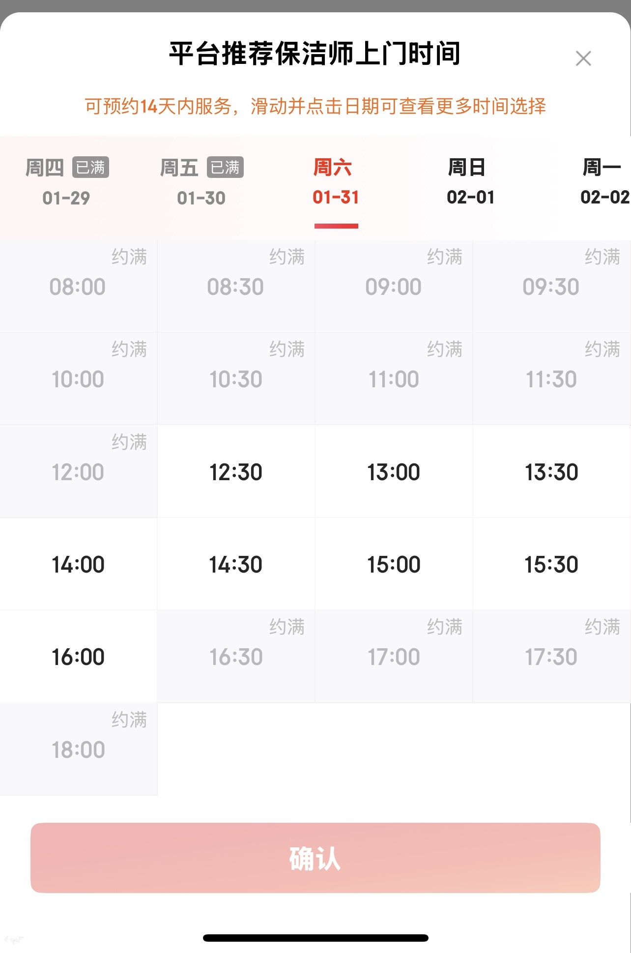 家政线上平台显示,保洁项目节前周末几乎已被约满。