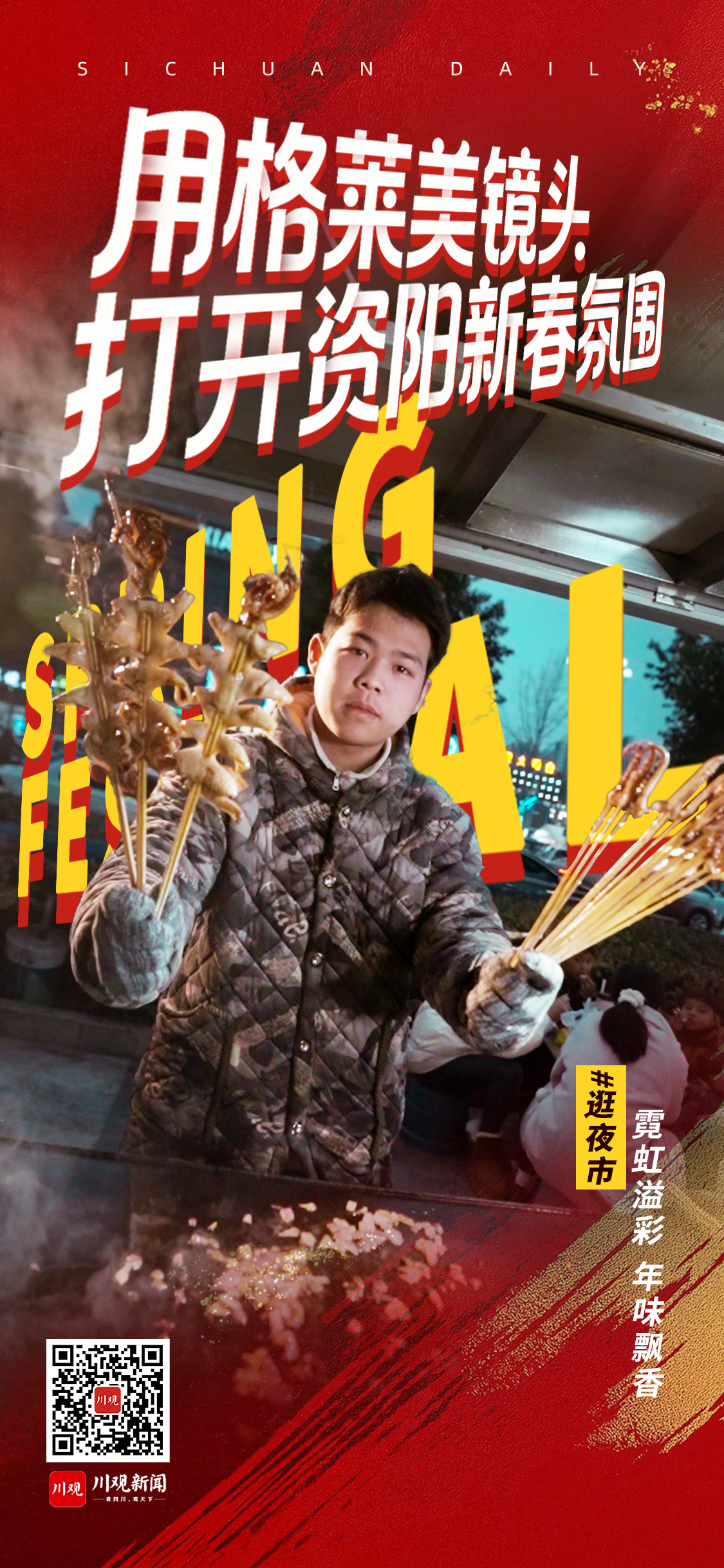 与此同时,城市公园、广场及主要干道陆续挂起五颜六色的喜庆灯笼;夜市与小食街区里,袅袅炊烟与浓郁香气交织……跟随视频,用格莱美慢镜头的视角打开资阳这座城市的新春氛围。