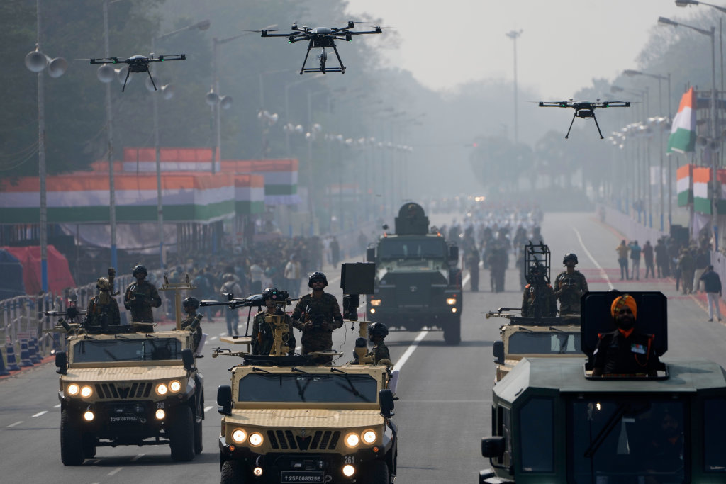 1月24日在印度加尔各答拍摄的共和国日阅兵彩排现场。图据新华社/美联