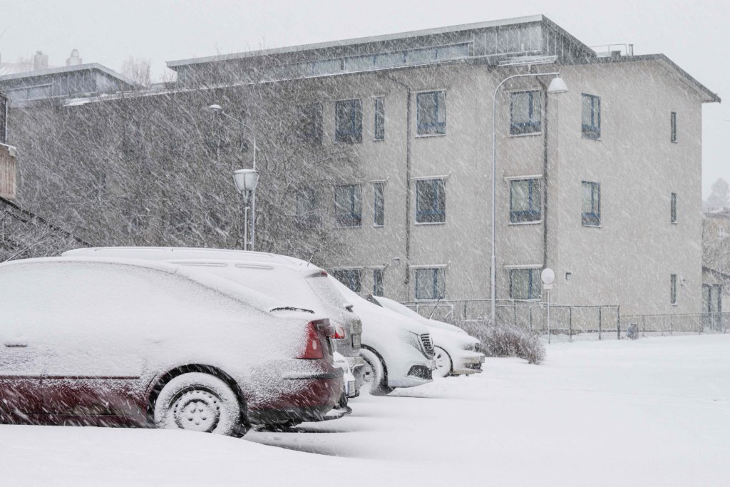 2026年1月1日,在瑞典首都斯德哥尔摩附近的松德比贝里,车辆被积雪覆盖。图据新华社/法新