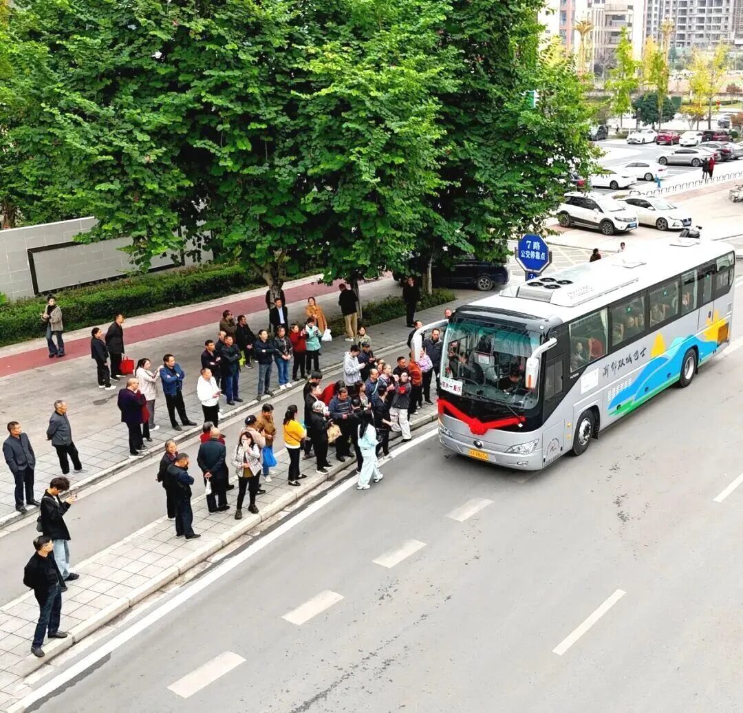 上午9时,车牌为川X的绿色巴士准时停靠在黄桷树公园南站。车门开启,司机刘明杨站在门边,声音洪亮而温暖:“请大家有序上车,行李多的乘客不用急,我来帮忙。”
