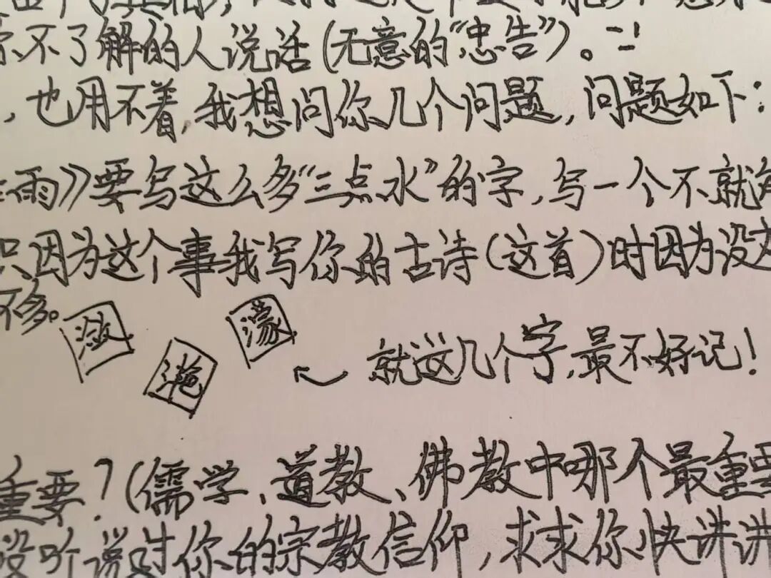 这封是一个十二岁孩子写的。她说:“东坡先生,你的《饮湖上初晴后雨》为什么要写这么多三点水?潋、滟、蒙这几个字真难记。”