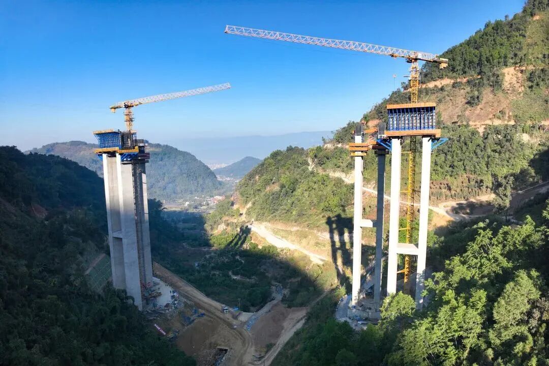 日前,瑞孟高速(德宏段)芒市北互通主线3号桥连续刚构主墩柱全部顺利封顶。芒市北互通为瑞孟高速全线控制性工程之一,主线3号桥左幅全长951.08米,主桥采用70米+130米+70米连续刚构体系,设置25#、26#双肢薄壁空心主墩,主墩最大高度达80米;右幅全长926.08米,主桥同样采用70米+130米+70米连续刚构体系,设置22#、23#双肢薄壁空心主墩,主墩最大高度为80米。