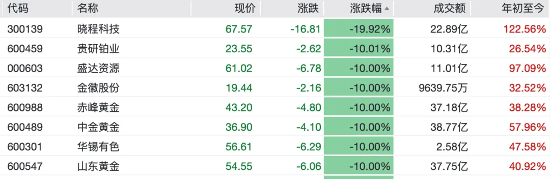 1月30日,A股三大指数集体低开,截至10点左右,跌幅均超1%。黄金、基本金属板块领跌,个股现跌停潮。白银有色、兴业银锡、豫光金铅、中金黄金、盛达资源等多股跌停。湖南黄金逆势涨停,录得5连板。消息面上,现货黄金白银全线飘绿。