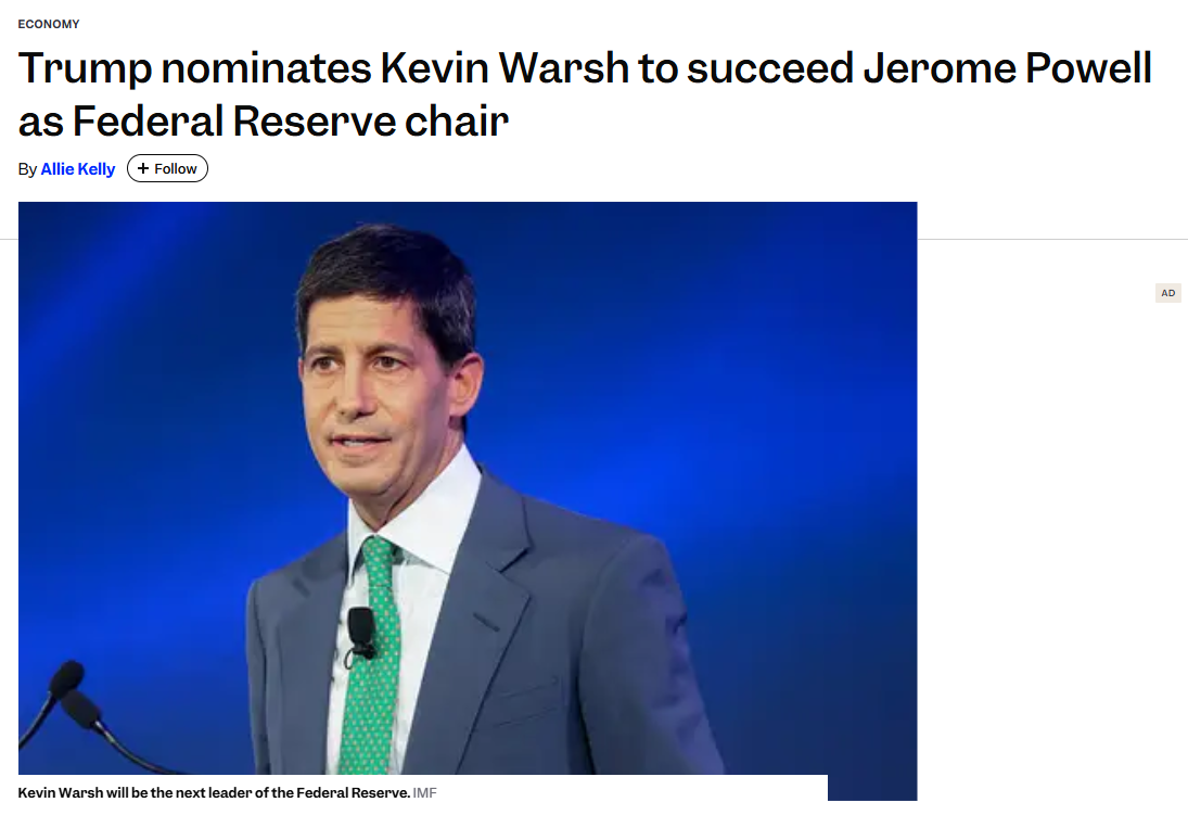 美国总统特朗普30日提名美联储前理事凯文·沃什为下任美联储主席,这一提名还需获得参议院批准。