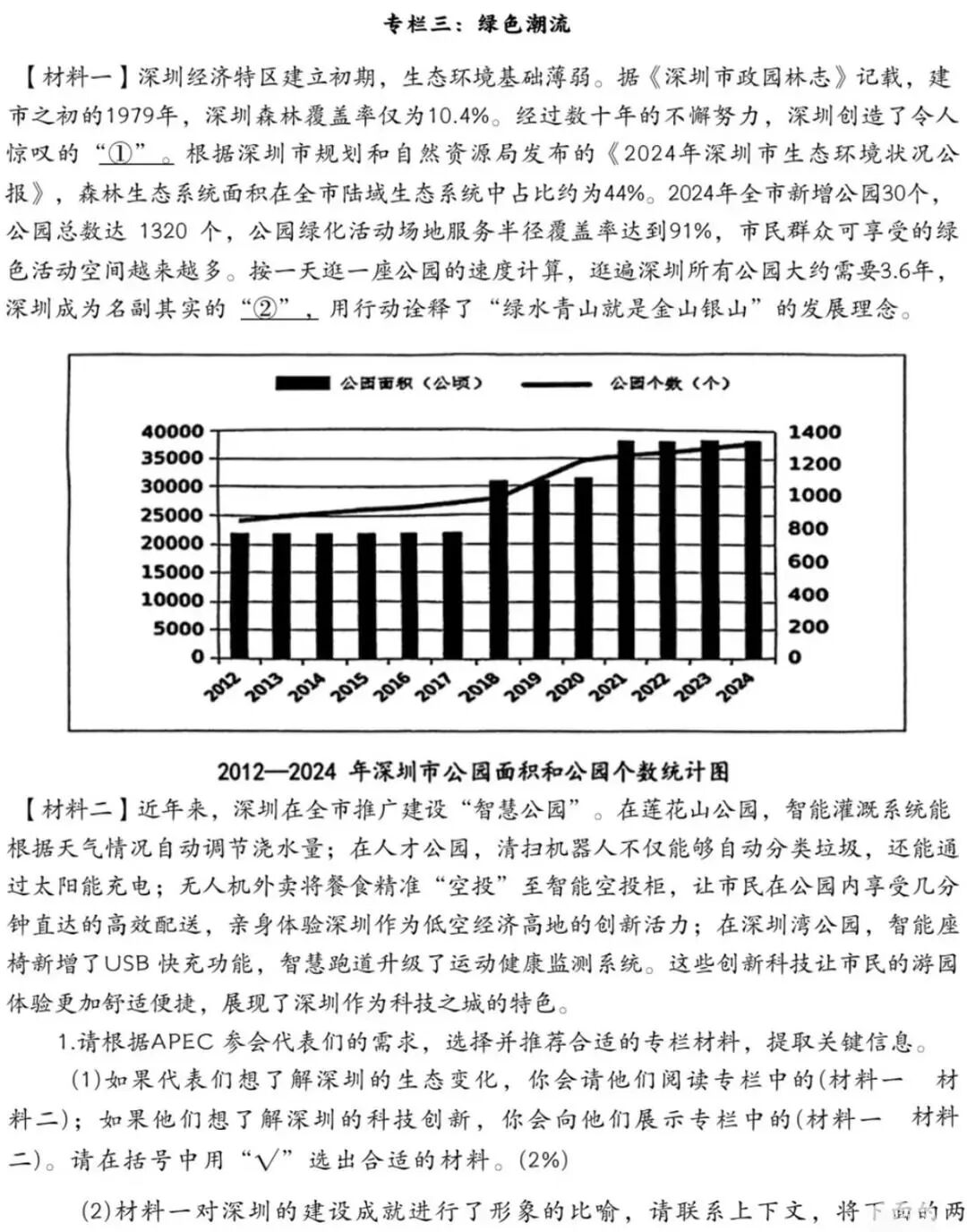 “例如,关于深圳生态环境变化、创新科技的文本材料就加入了柱形图和折线图,本身阅读难度不大,但内容对部分小学生而言缺乏吸引力,容易导致孩子读完不知所云,或者没有耐心读进去。如果学生有阅读思维,能抓到重点,其实很好拿分。”该老师说。