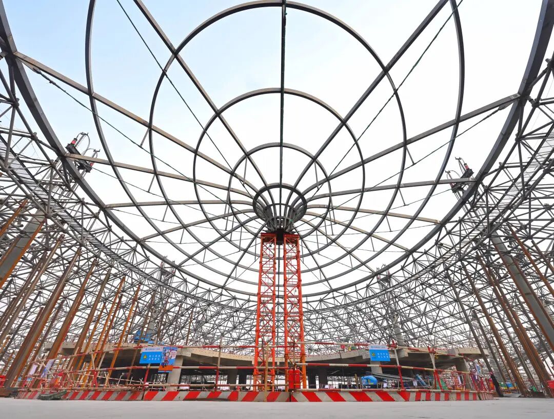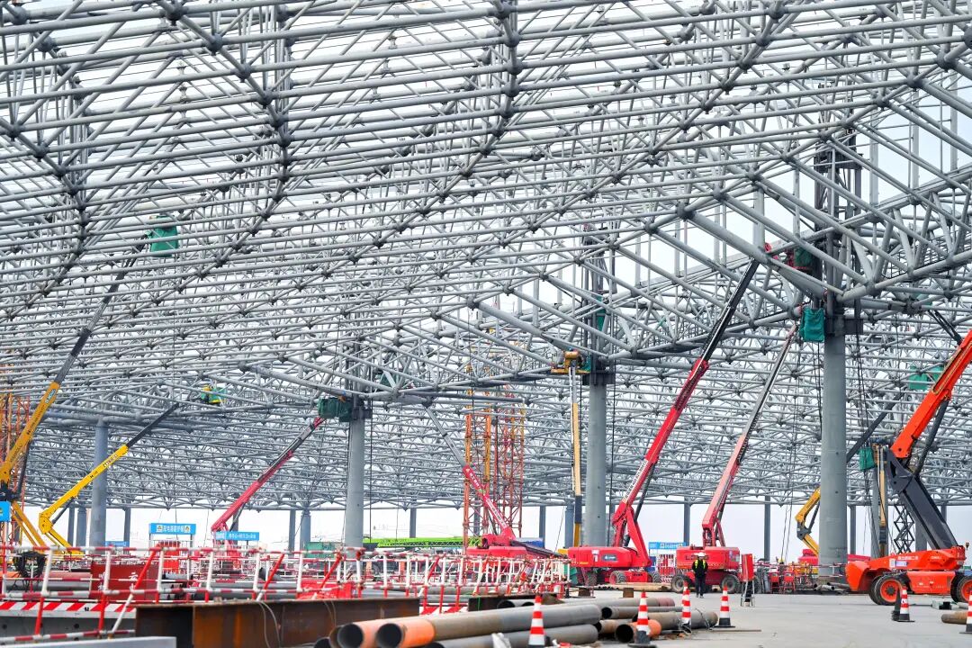 2026年,济南机场二期改扩建工程迈入冲刺收官关键阶段,全体参建人员展现出开局即决战、起步即冲刺的奋进姿态与实干拼搏精神。根据年初确定的工期计划,顺利完成了钢屋盖提升任务。下一步,全体参建人员将以更坚定的决心、更务实的作风、更有力的举措,加快推进济南机场二期改扩建工程航站区、综合交通枢纽、飞行区、市政配套等项目,冲刺年度各项任务目标,全力打造经得起检验的精品工程。