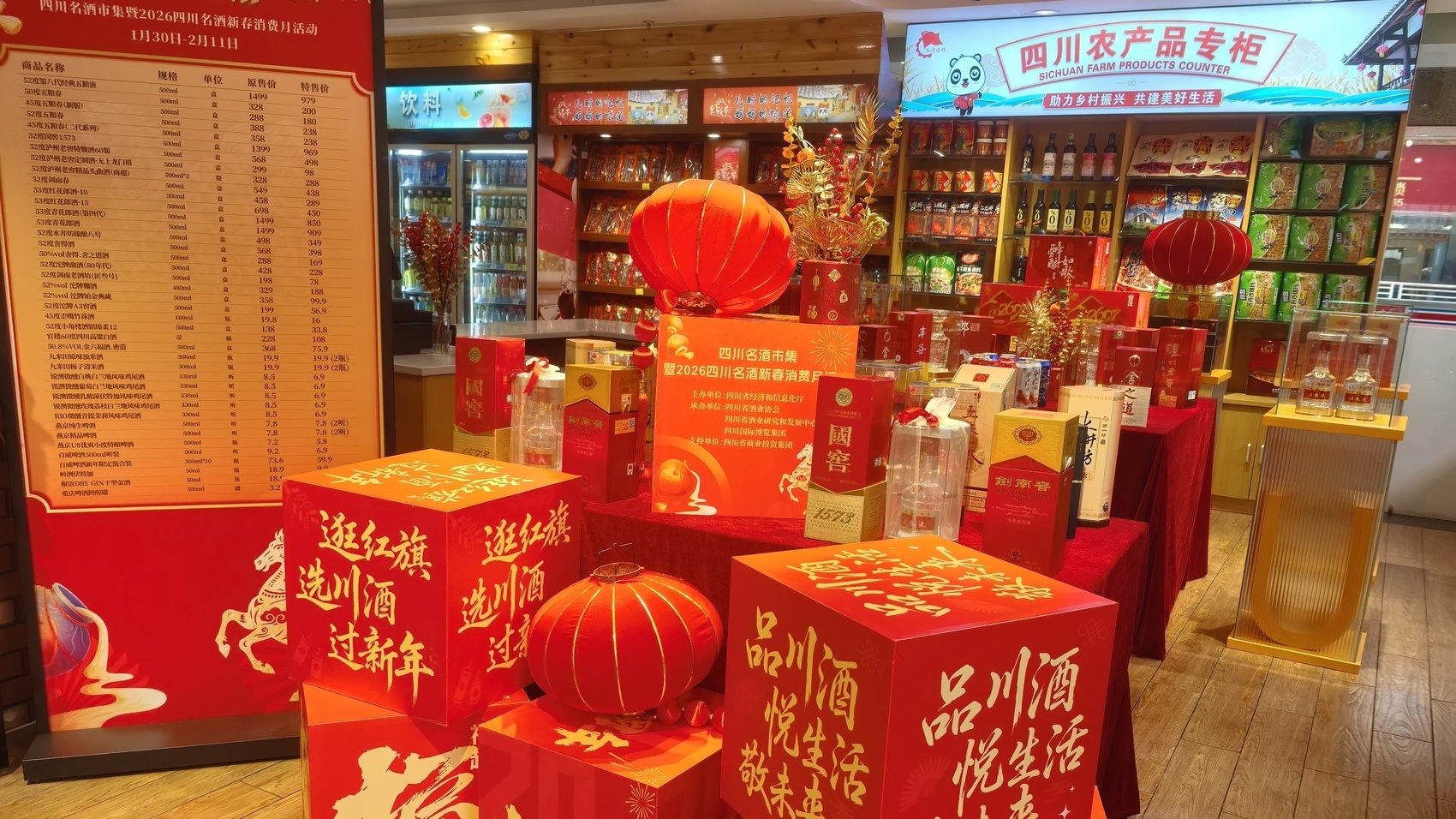 红旗连锁店内,开展川酒促销活动。