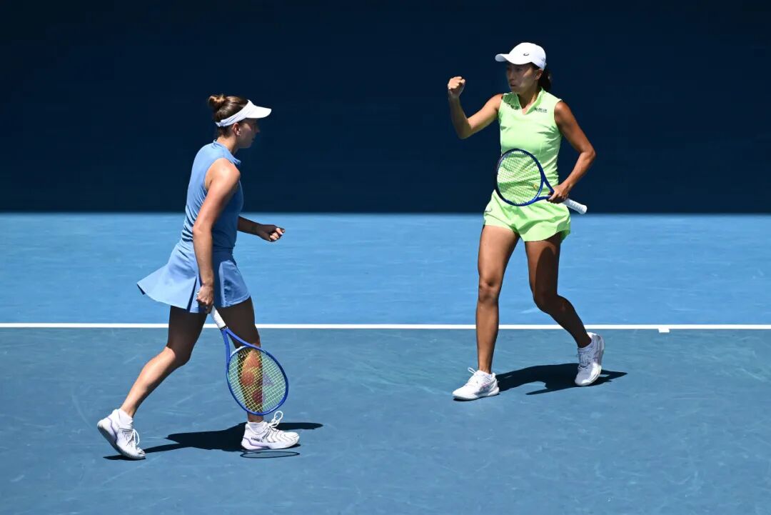 2026澳网女双决赛,张帅和自己的搭档梅尔滕斯以7比6、6比4击败了达尼丽娜、克鲁尼奇组合,成功登顶!