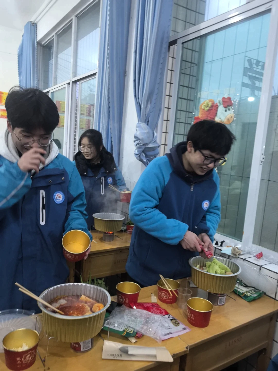1月25日晚自习上,当天现场秩序井然,学生们有序就餐、轻声交流,不少学生面对镜头展露笑颜、比出青春手势。火锅环节结束后,余老师自掏腰包600元,为学生们组织了红包抽奖环节,让这场特别的晚自习,成为全班学生心中一段珍贵的青春记忆。