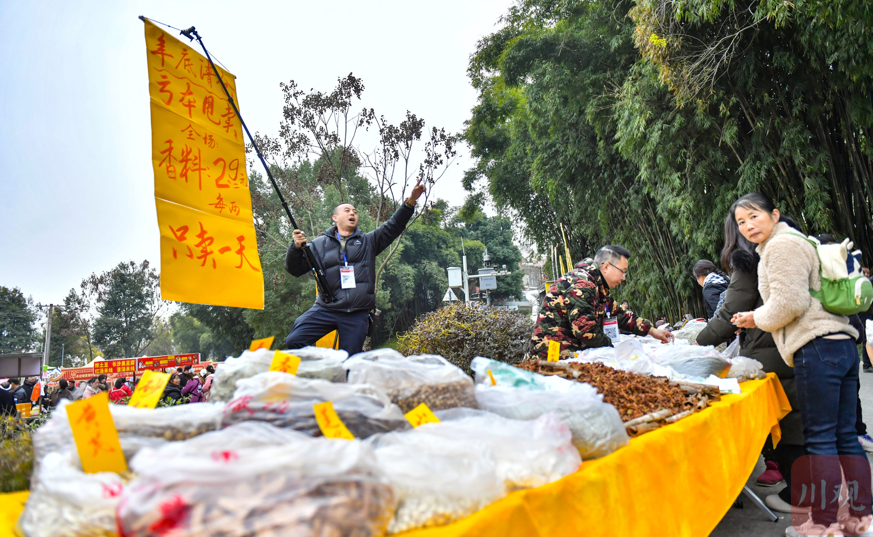 2026年1月31日,在成都市双流区永安镇三新村永安造物场首届“村糖会”上,摊主卖力推广农产品。