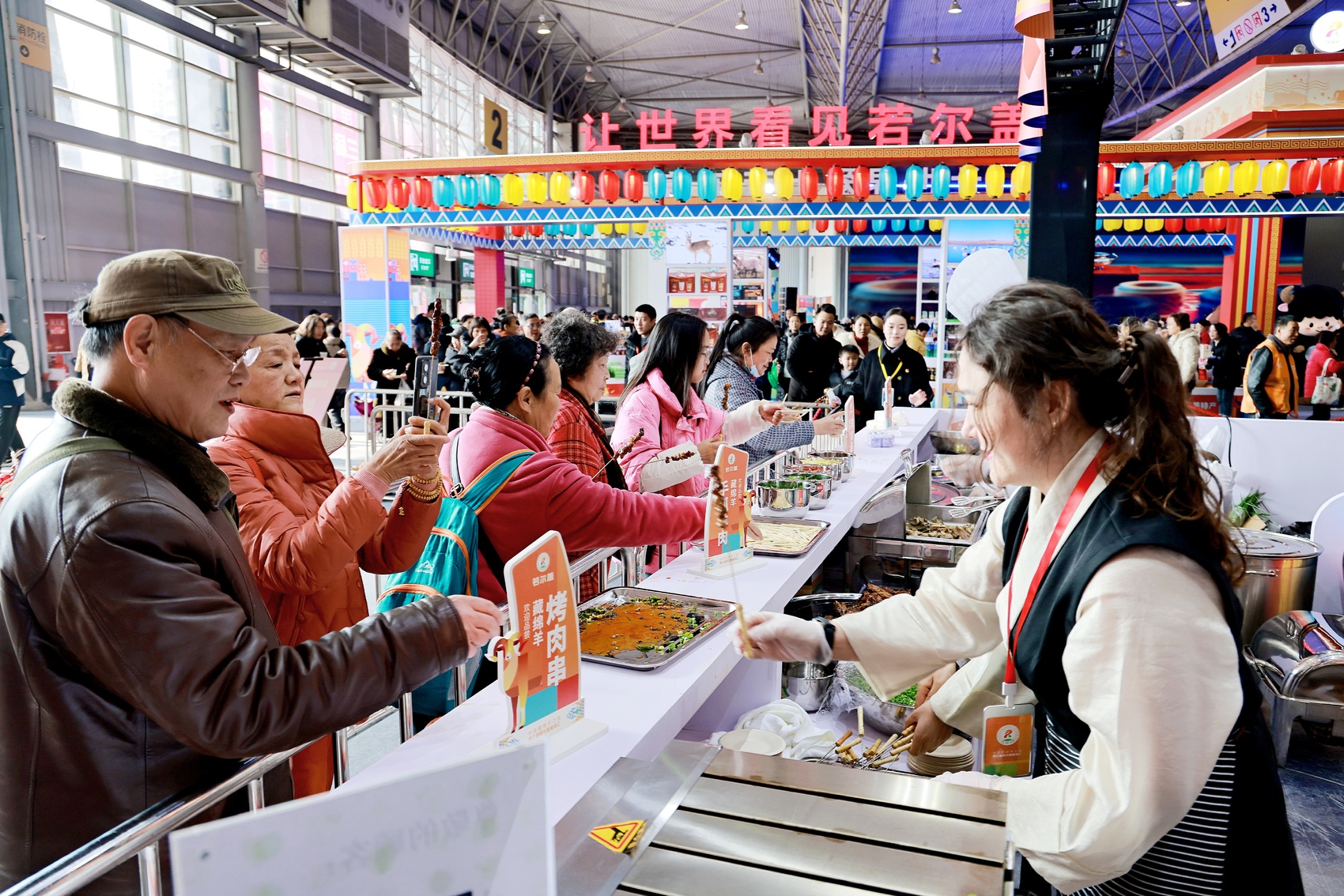 本届年货节不仅是采购平台,更是年味体验地。现场同步举办的“中国藏绵羊之都·第三届若尔盖美食汇”带来藏绵羊肉免费品鉴、藏歌锅庄舞表演、5000张景区门票免费送等多重福利。“天府旅游美食汇”则集结了军屯锅盔、白家肥肠粉、洛带伤心凉粉、新疆羊肉串等全国知名小吃,香气四溢。