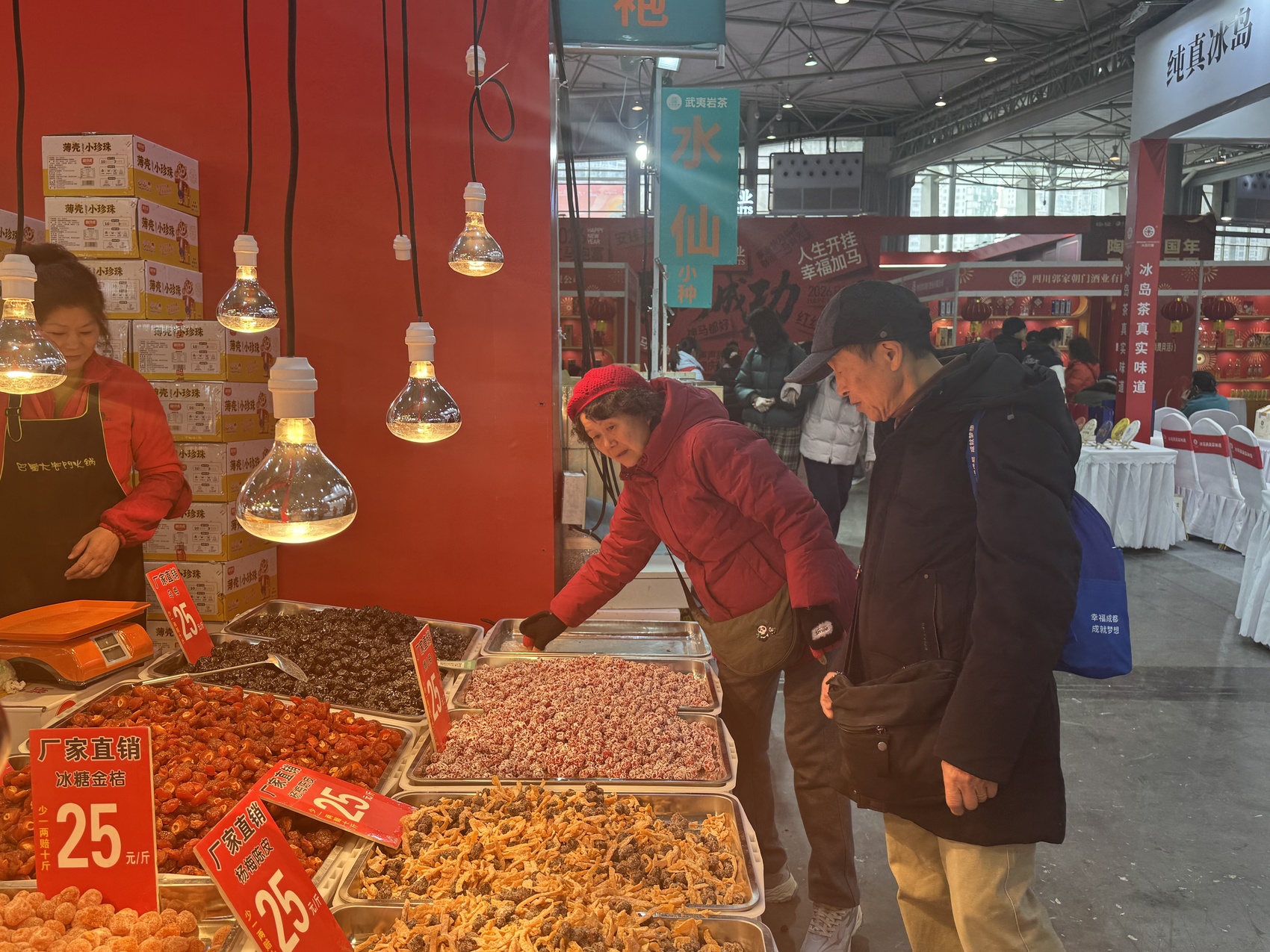“一年就来这么一次,趁机会把年货备齐!”1月30日下午,家住成都市成华区的市民杨小梅背着鼓鼓囊囊的购物袋,手里也拎满了刚买的年货,笑容满面地告诉记者。像杨小梅这样有备而来的市民不在少数,各个展位前围满了询价、试吃、采购的人群。