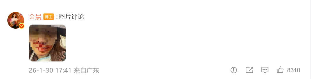随后,金晨在微博发文道歉,解释了事故经过并晒出自己当时受伤的照片。