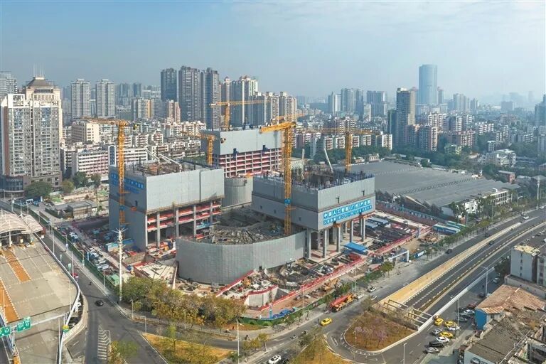 目前,项目正在全面推进主体结构施工,西侧三栋塔楼最高已施工至14层,今年项目将实现160米T3塔楼主体结构封顶。