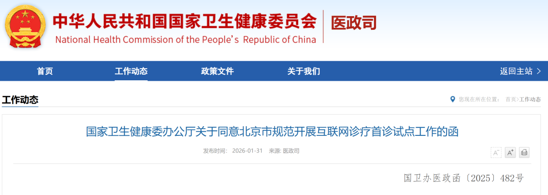 你委《关于申请开展互联网诊疗首诊试点工作的请示》收悉。为充分利用信息技术疏解北京非首都功能,满足外地患者就医需求,经研究,同意你委依托首都医科大学附属北京儿童医院和首都医科大学附属首都儿童医学中心开展儿童生长发育专业、儿童营养专业、儿童皮肤疾病专业互联网诊疗首诊试点。现提出以下工作要求:
