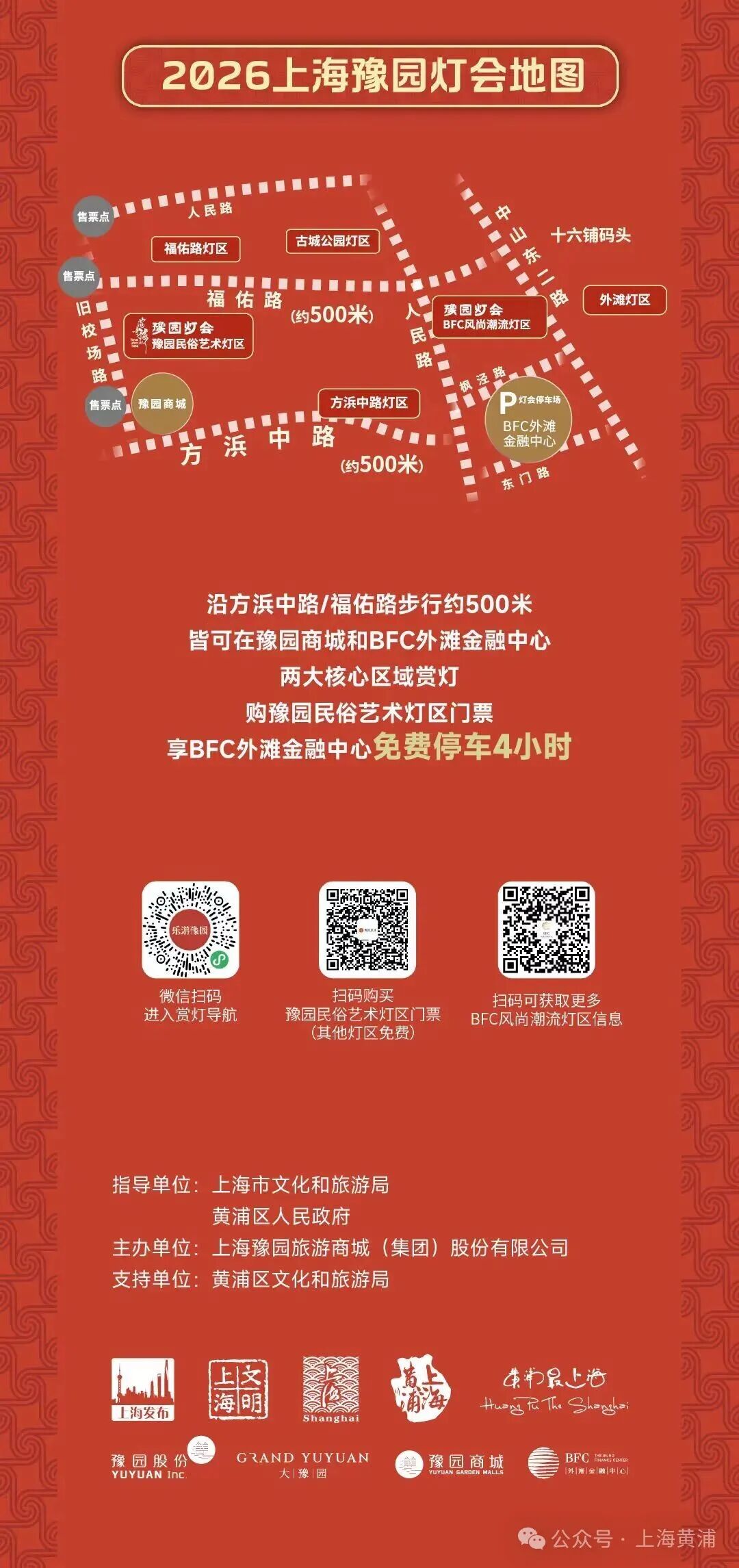 对于自驾前来的游客,可选择景区周边的社会付费停车场。今年灯会门票还附带了停车优惠权益,凭门票可在BFC外滩金融中心享受4小时免费停车服务。1500多个车位,宽敞畅停!有人民路/枫泾路/东门路/中华路,4个出入口。凭豫园灯会票根,还可免费停车4小时。