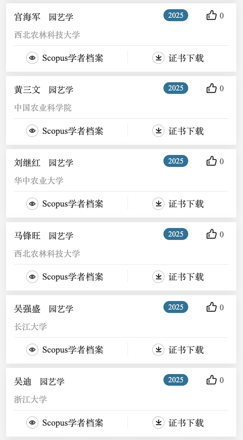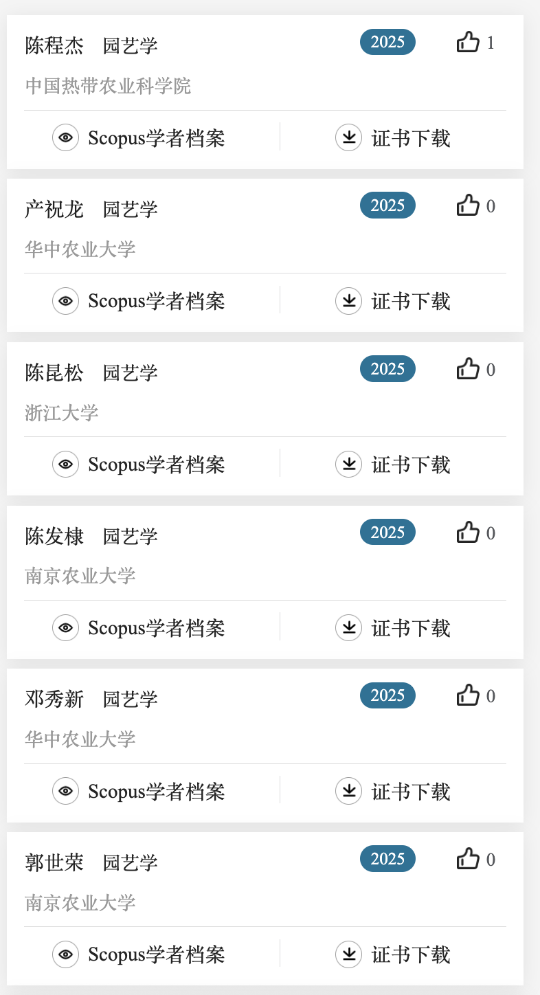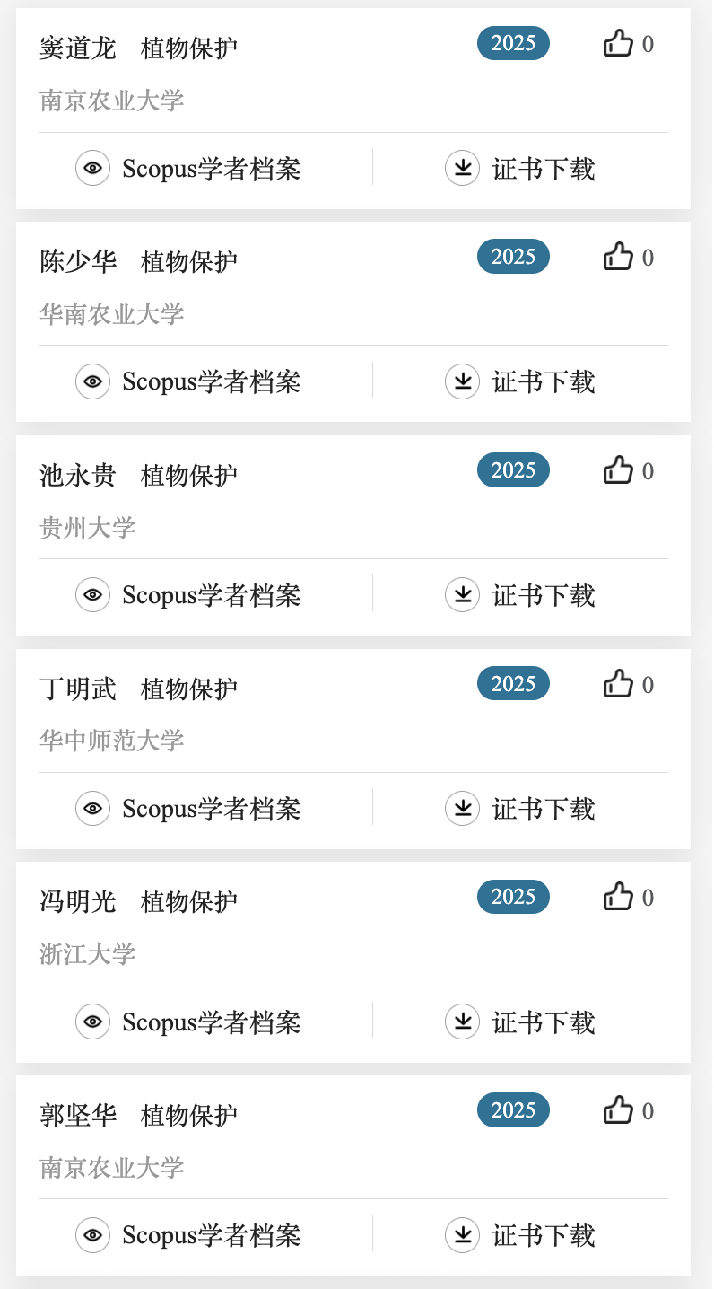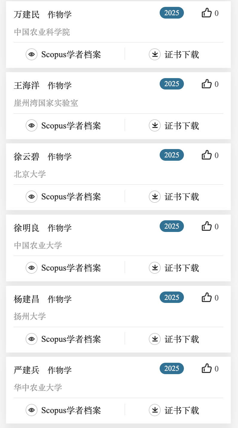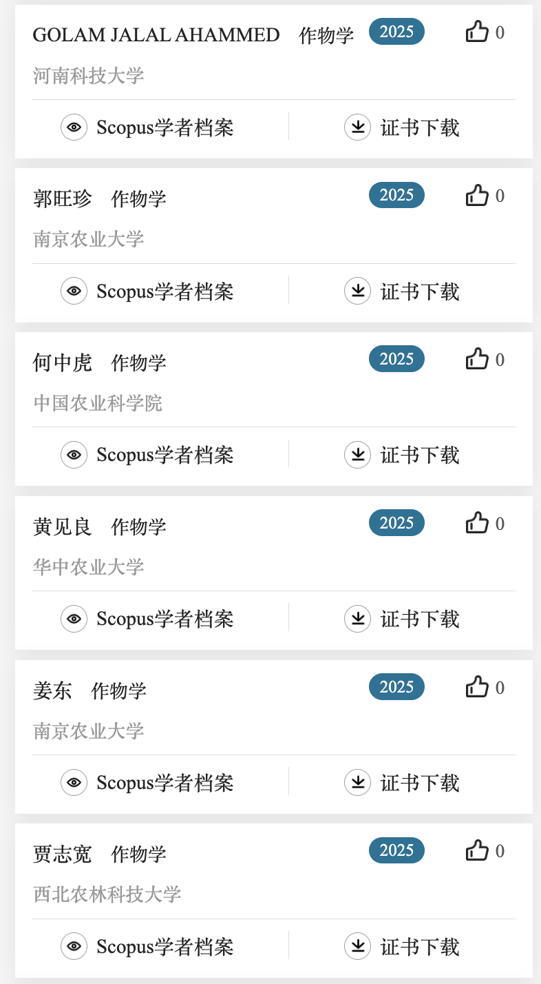 下面列出了作物学,植物保护,园艺学,草学及林学领域上榜学者名单。更多名单可关注爱思唯尔服务号查看。