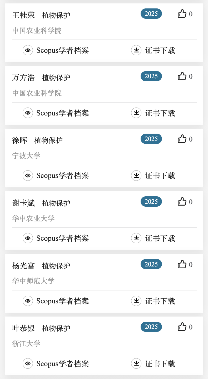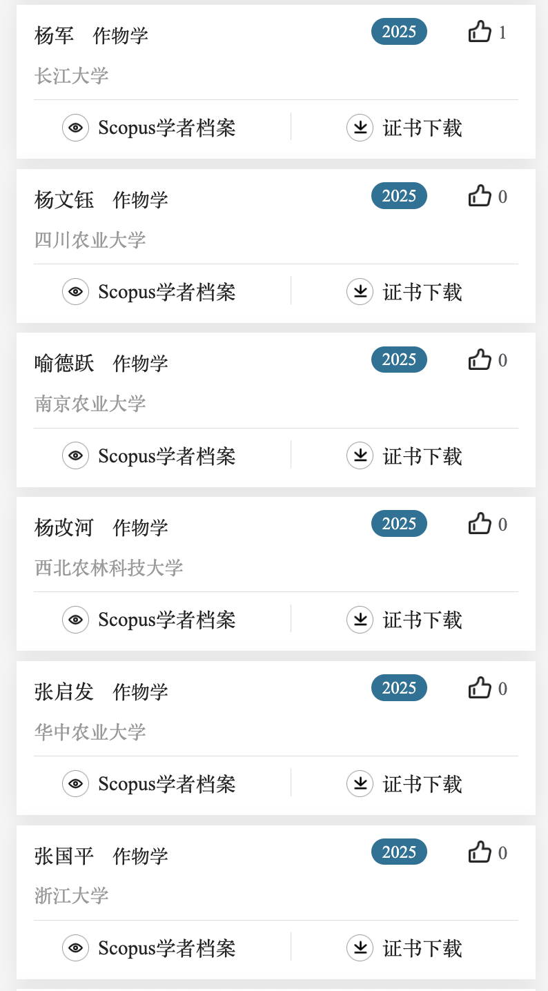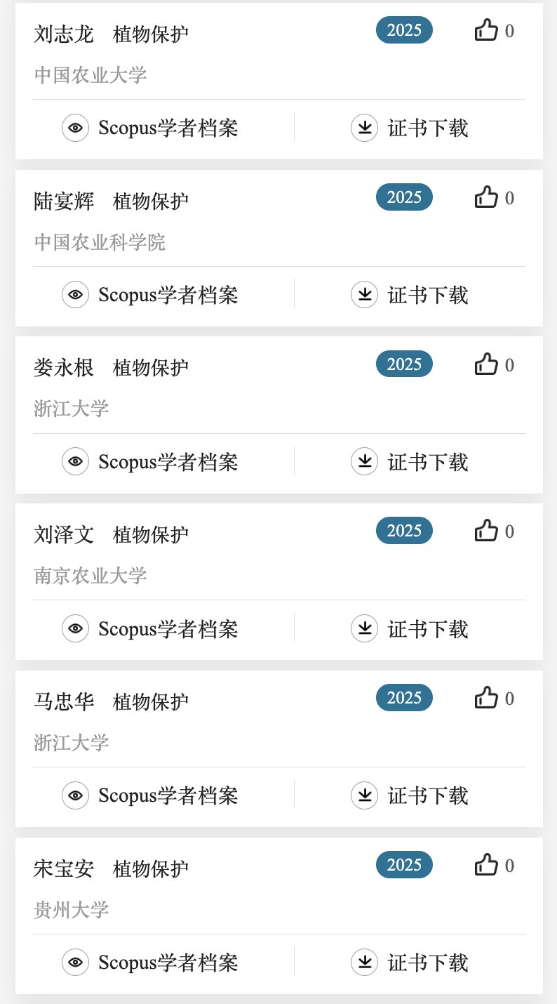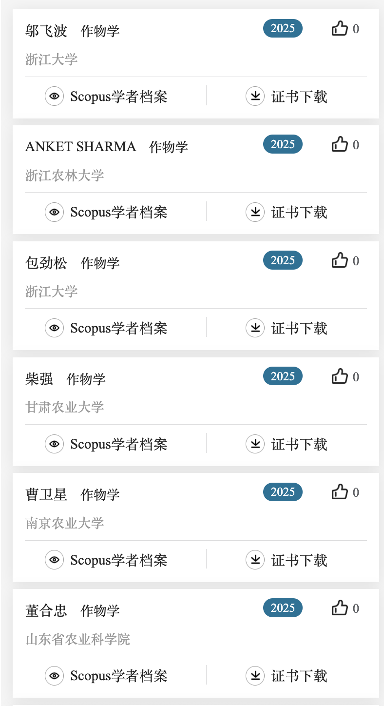 下面列出了作物学,植物保护,园艺学,草学及林学领域上榜学者名单。更多名单可关注爱思唯尔服务号查看。