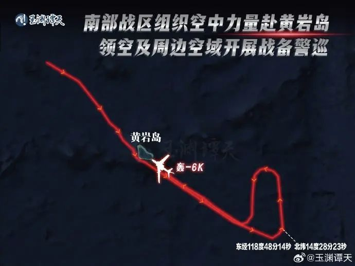▷1月31日,中国人民解放军南部战区组织海空兵力位中国黄岩岛领海领空及周边海空域开展战备警巡。已公开的航线示意图显示,南部战区轰-6K轰炸机、歼击机组成编队飞抵黄岩岛空域后,沿东南方向空域巡航。