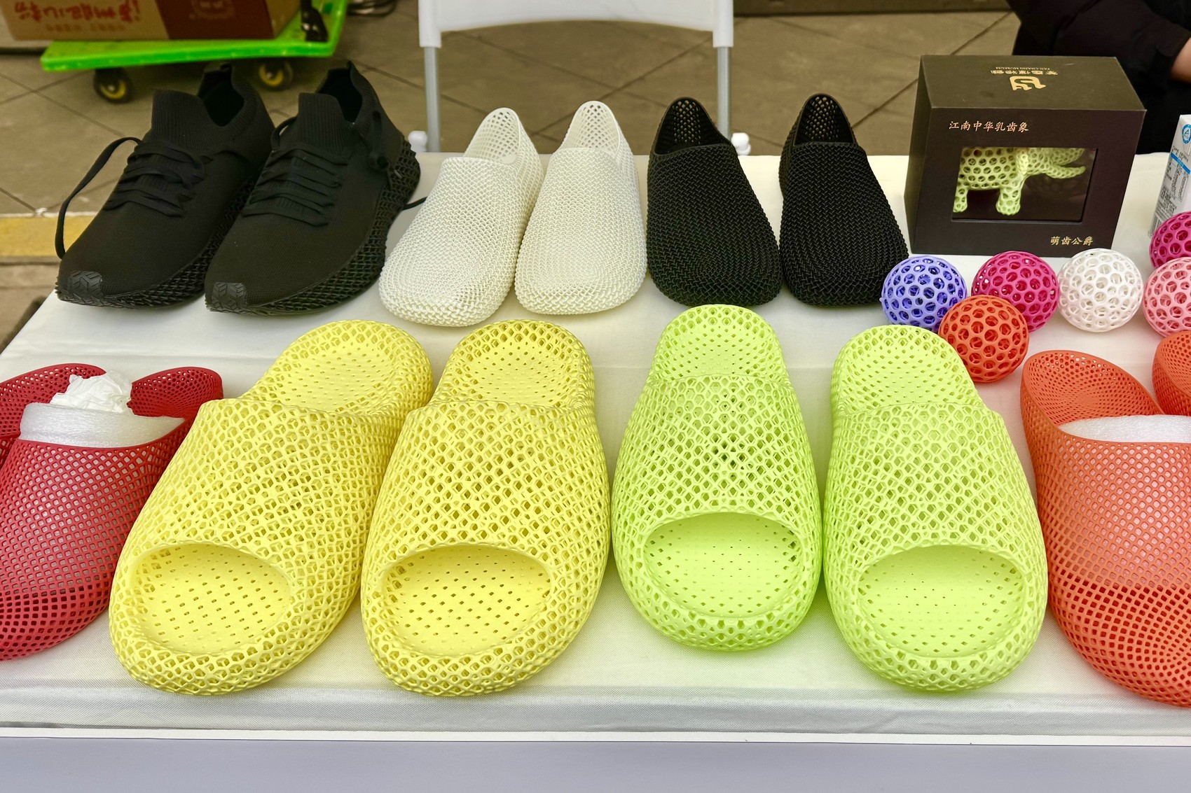3D打印的拖鞋和鞋子。