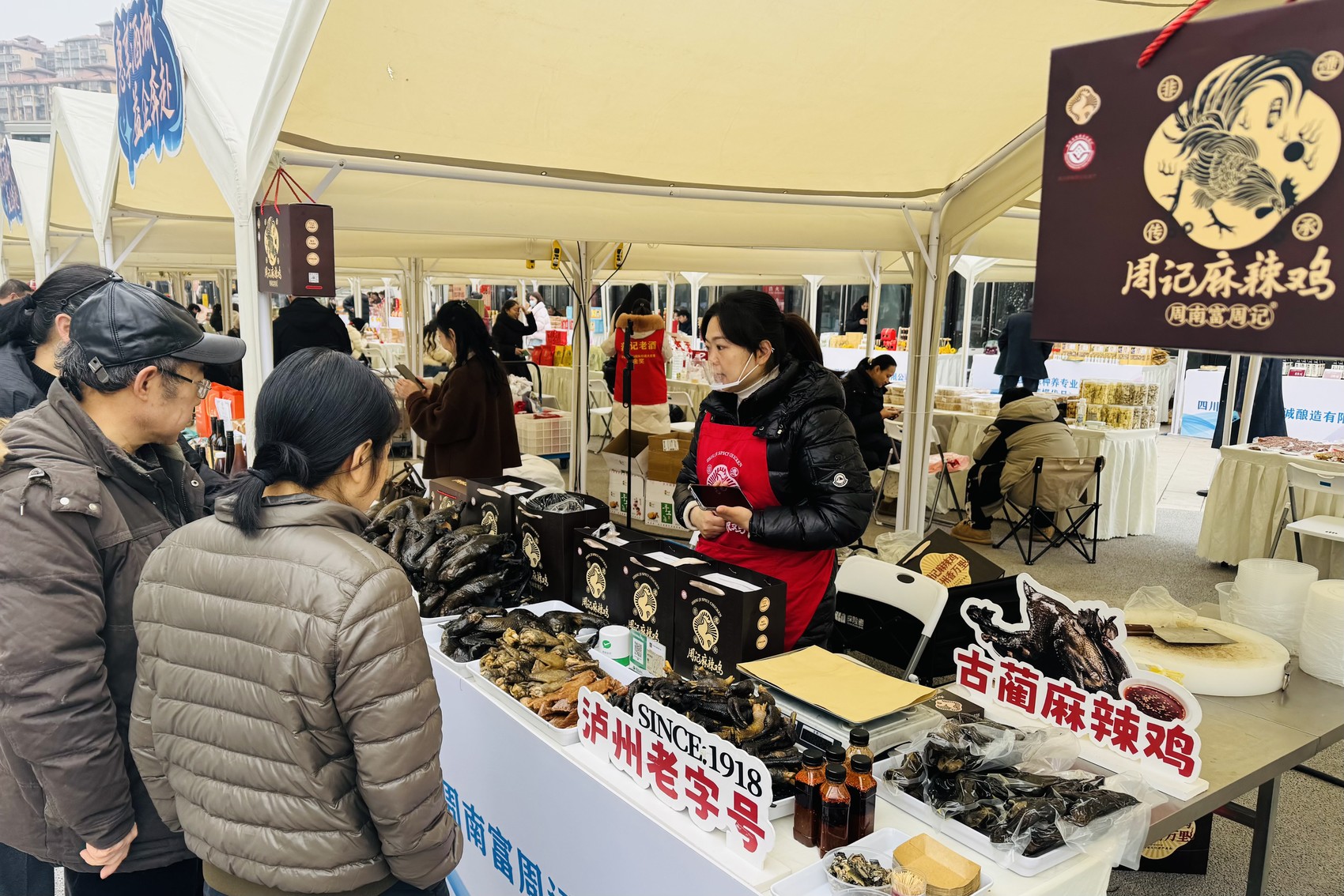 “制享泸工”展区的麻辣鸡展台。