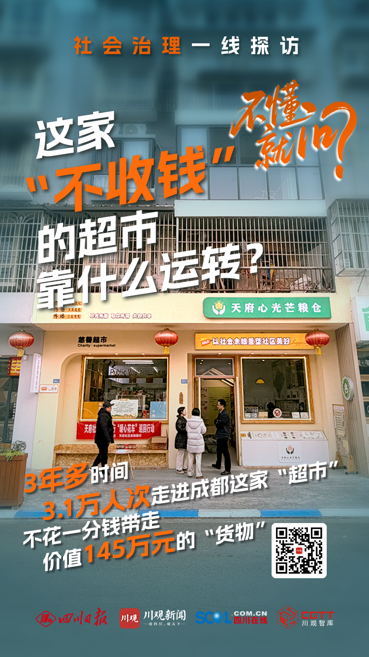 在成都市温江区天府街道游家渡社区,有一家看起来再普通不过的“超市”。但当你挑好东西,准备付款时,却会被工作人员礼貌拒绝:“不好意思,用钱买不到。”