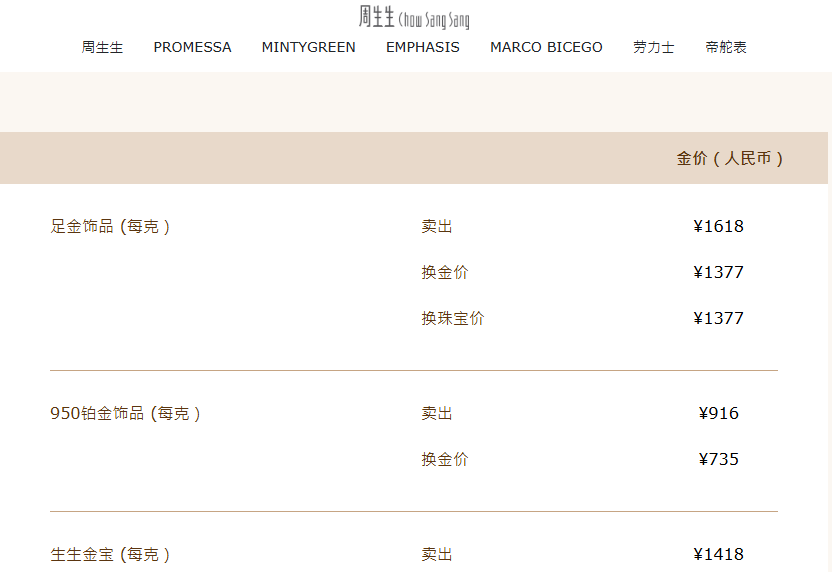 周生生官网发布数据显示,今日足金饰品报1618元/克,该店于29日足金饰品报1708元/克,两日跌去90元/克。