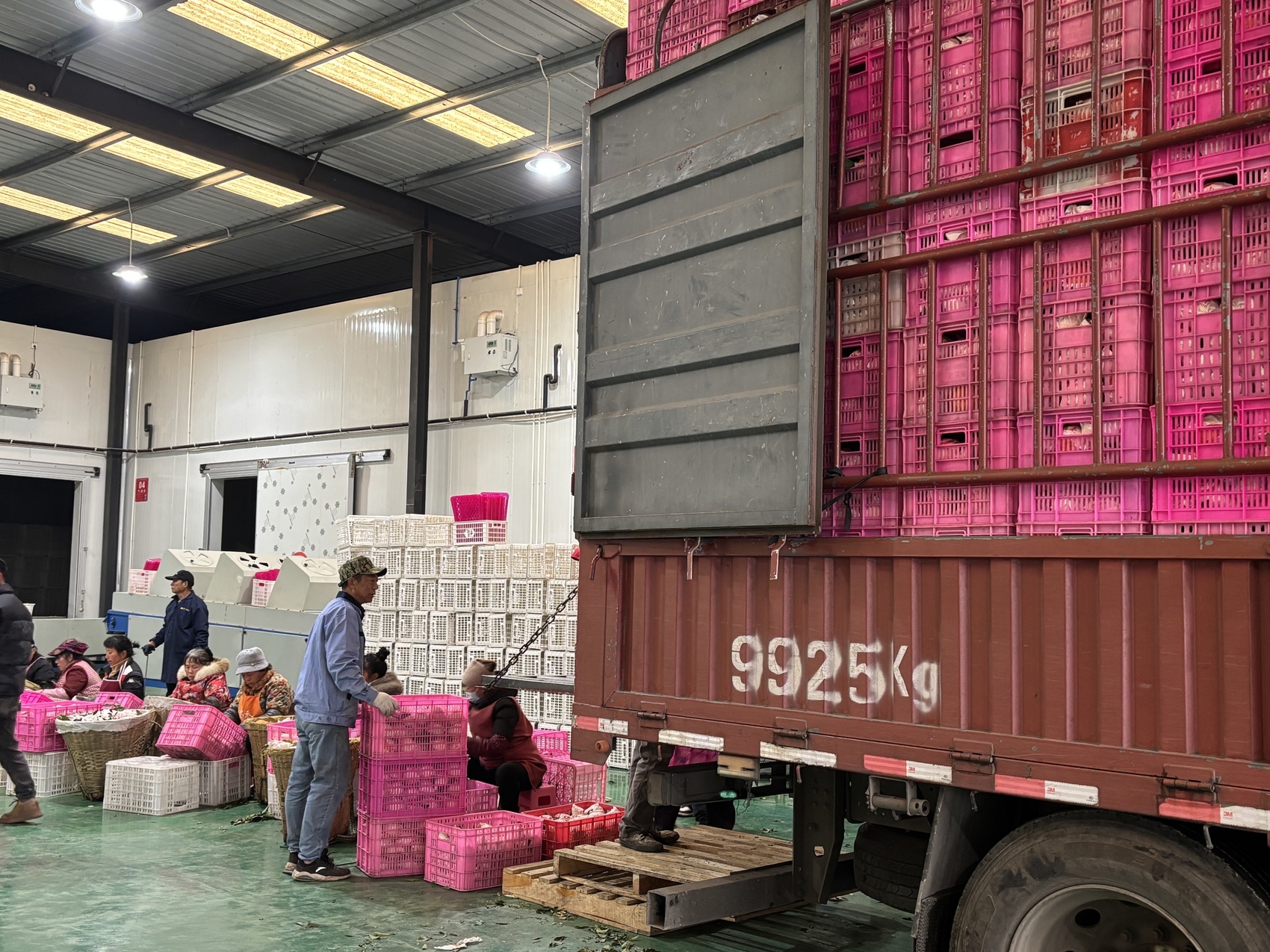 四川天马山生态农业有限公司冷链物流中心,工人正在装货。