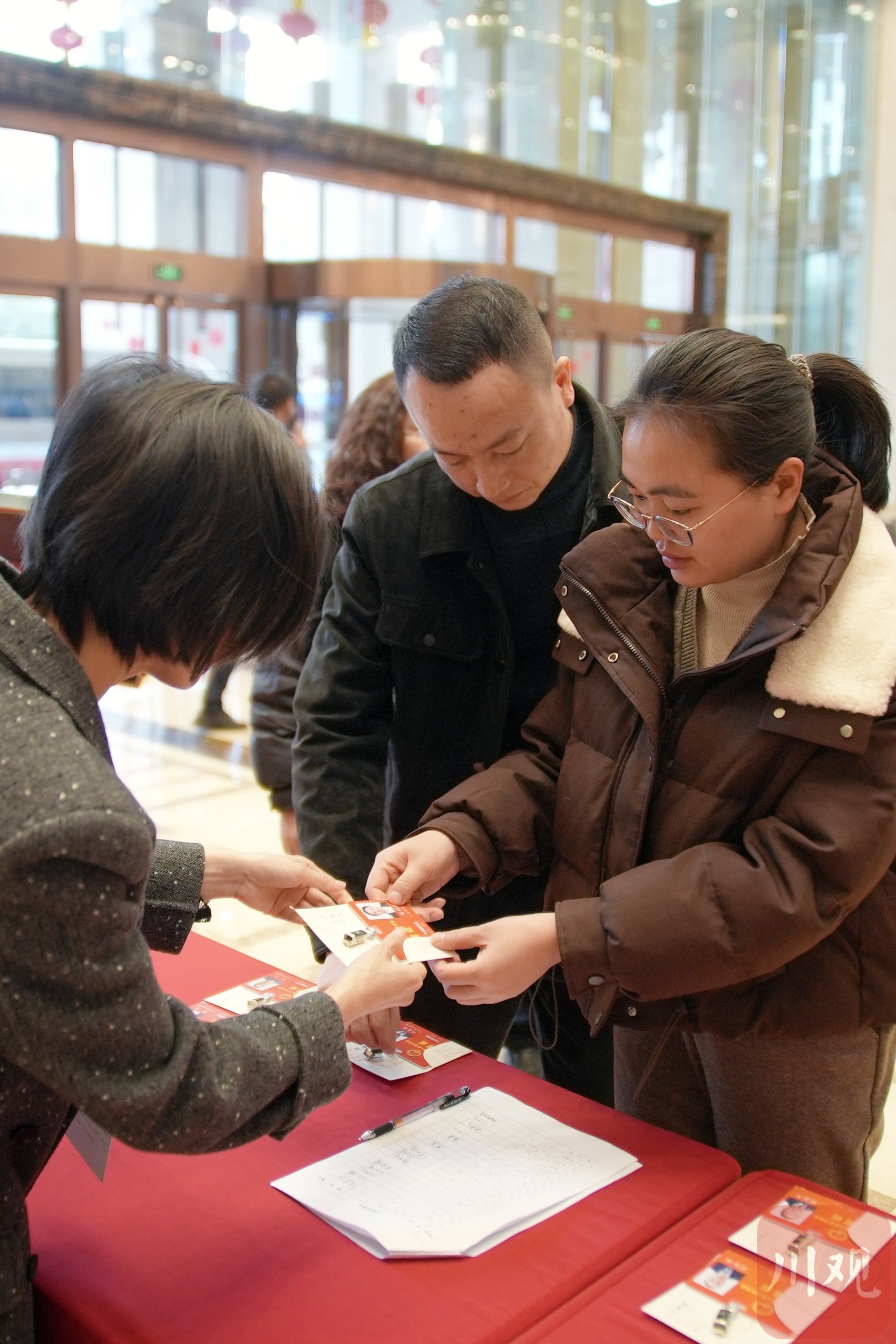 省人大代表履行报到手续,领取证件。