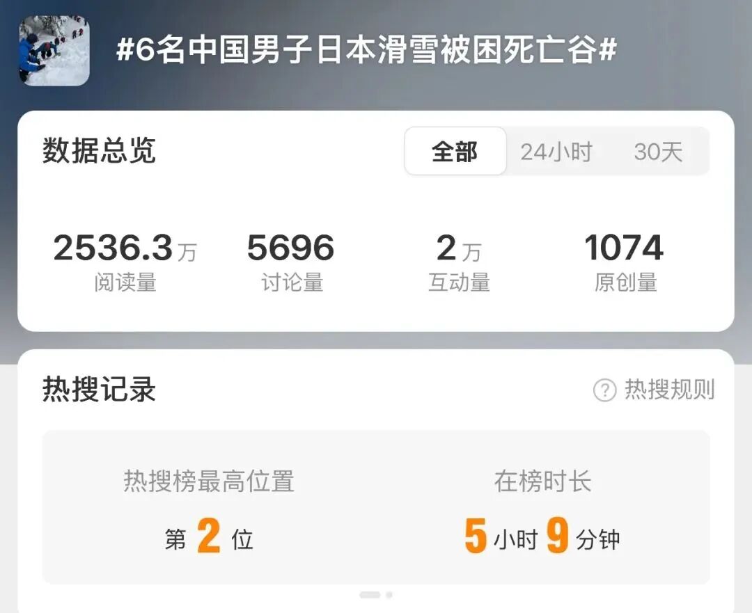 1月25日下午,有网友发文求助,朋友6人被困日本新潟县八海山死亡谷,希望有人能够帮忙救援。