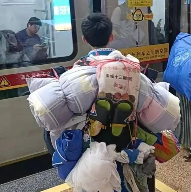 近日,一张广州中学生的背影图片火爆网络。照片中,一个穿着中学校服,身材瘦小的男生手里推着箱子,背着大包小包等地铁。“打包神技”引得网友尤其是家长们齐声称赞:“这么多东西用绳子打包背着,我一个成年人都做不到。”