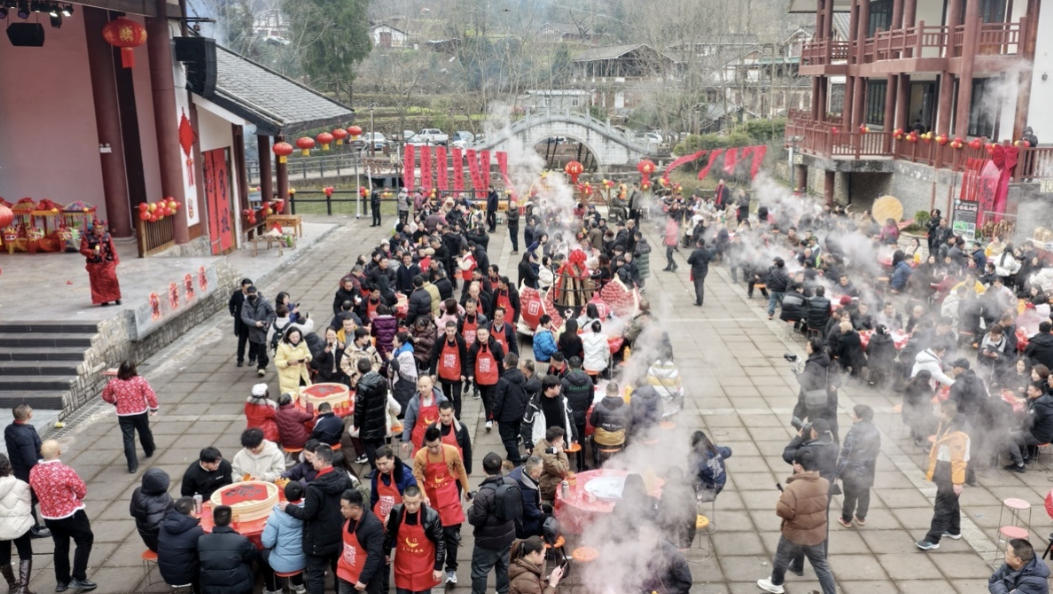 广元市利州区白朝乡月坝村第六届年夜饭系列活动火热开场。高志农 摄(点击图片查看原文)