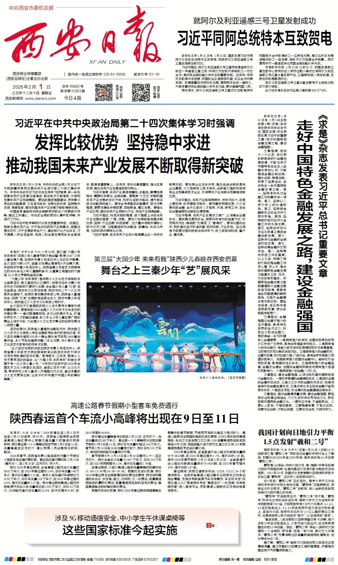1月30日,第三届“大国少年未来有我”陕西少年儿童春节联欢晚会暨“畅想2035”少年儿童创意大展,在西安市青少年活动中心正式拉开帷幕。此次活动为期10天,涵盖30场舞台展演和4天创意大展,来自西安市青少年活动中心、陕西省青少年宫艺术团等单位的8600余名少年儿童踊跃参与,以童真之笔描绘时代画卷,以少年之声奏响奋进乐章。图为陕西少儿春晚现场。(主办方供图)