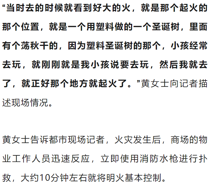都市现场记者致电辖区消防救援部门了解情况,工作人员确认已出警处理此事,并指出消防人员到达现场时,商场物业已经基本控制住火势。现场没有人员被困,火情的具体原因当地消防正在进一步调查中。