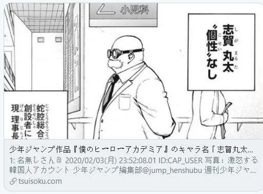 该期漫画出版后,迅速遭到众多网友的声讨和质疑。堀越耕平仅在社交媒体表示“自己并无此意”,日本出版方集英社发布声明称此为“无心之失”,并未致歉。《周刊少年Jump》杂志也发出公告,表示在将来的漫画本中会对此名字进行更改,但并未表示对这期杂志进行修改。