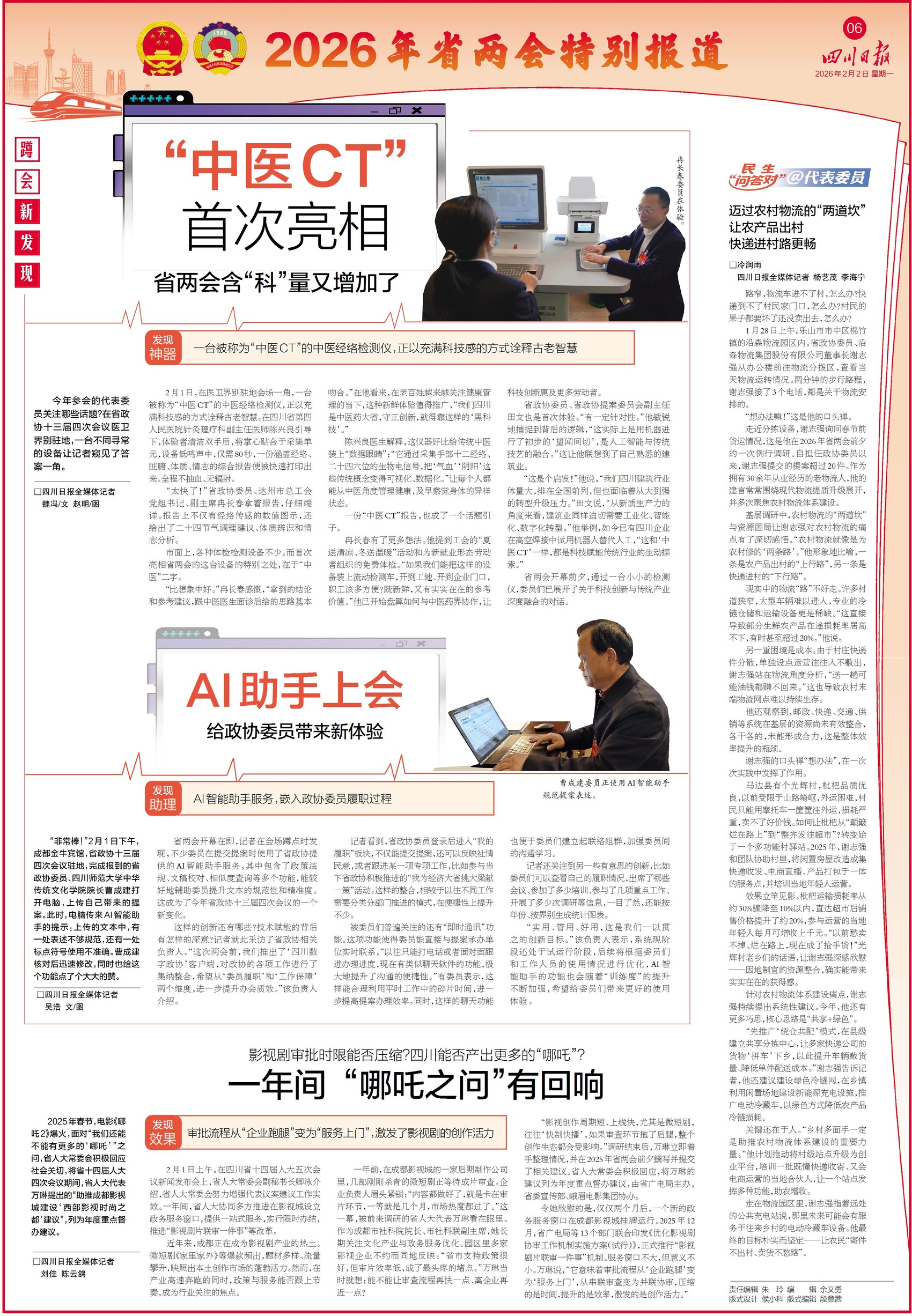 今天川报第五、六版,为您带来本次两会特别报道。敬请关注。