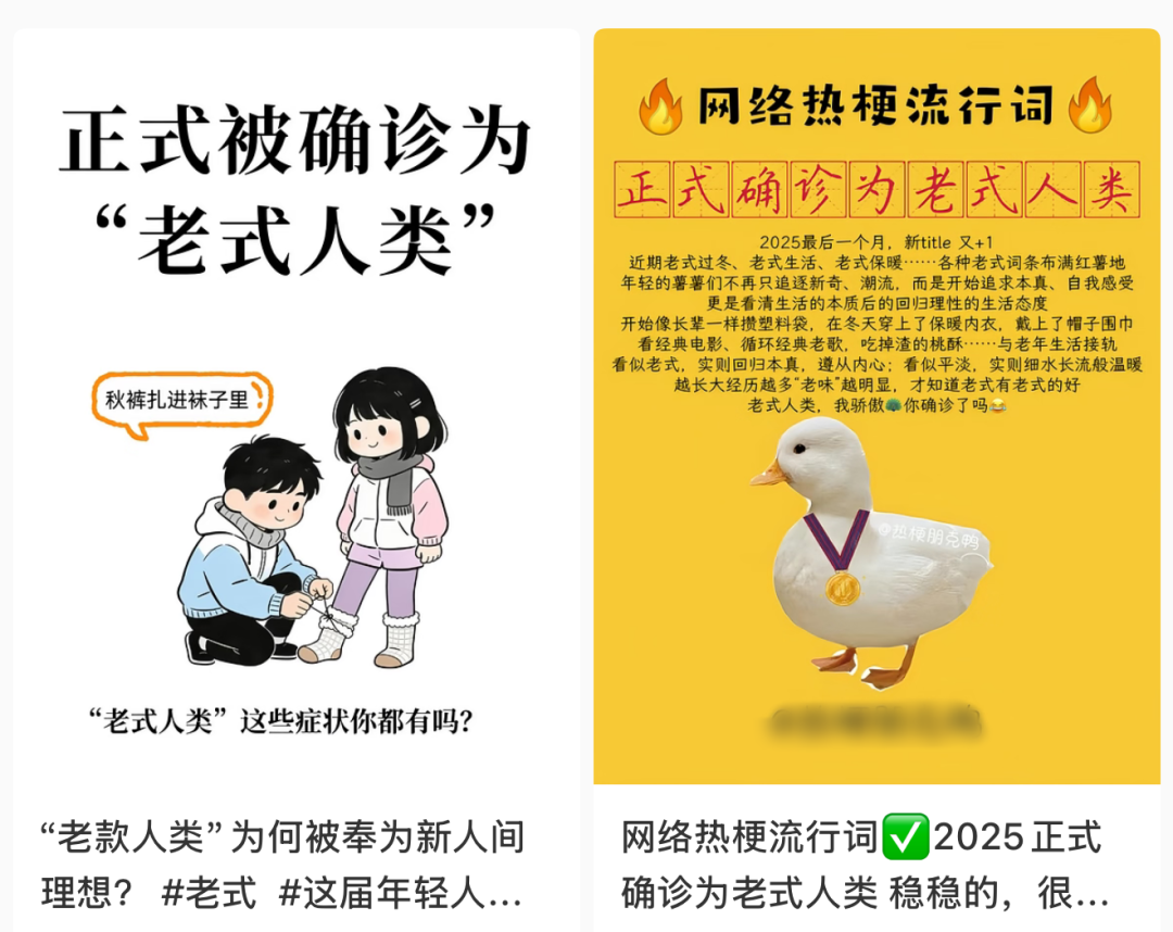 在信息膨胀和消费选择多样的当下,悠悠然的“老式”生活,看似朴素,缺乏刺激,但它沉淀下来的实用和稳健,恰恰给了快节奏中的人们一定的情绪缓冲。“老式人类”不是一味加速,单纯追求外在形式上的“更多”“更新”,而是转向自我体感上的“足够”“适宜”,为自己构建一处情感舒适区。